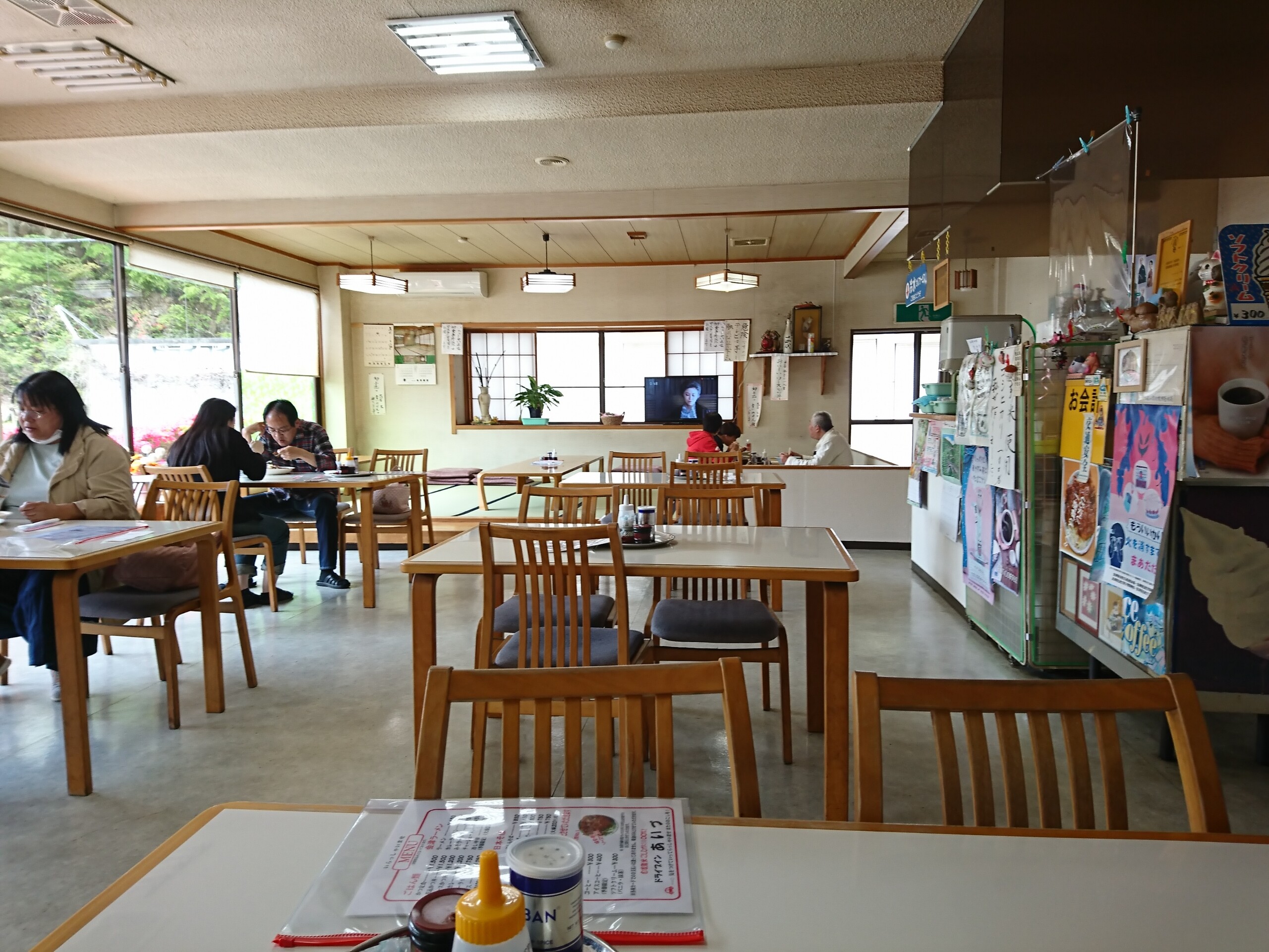 前回は2軒隣のドライブインあいづで名物のソースかつ丼を食べて量が多くて油がきつく気分が悪くなった思いがあるので、今日は名物は置いといてラーメン(550円)を食べました。ラーメンはシンプルな昔ながらの中華そばって感じで、あっさりの醤油味ですが素朴な優しい味わいでとても美味しかったです。