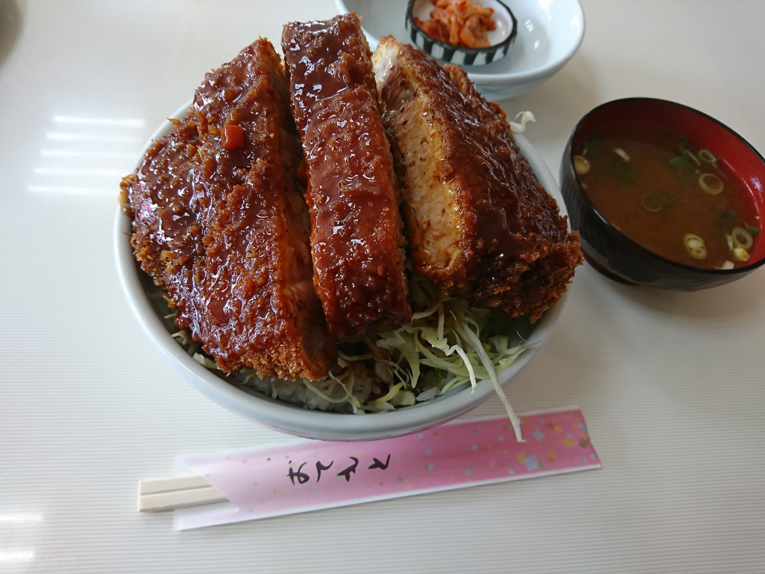注文したのは会津名物のソースかつ丼(1200円)です。ソースかつ丼に味噌汁・キムチが付いています。