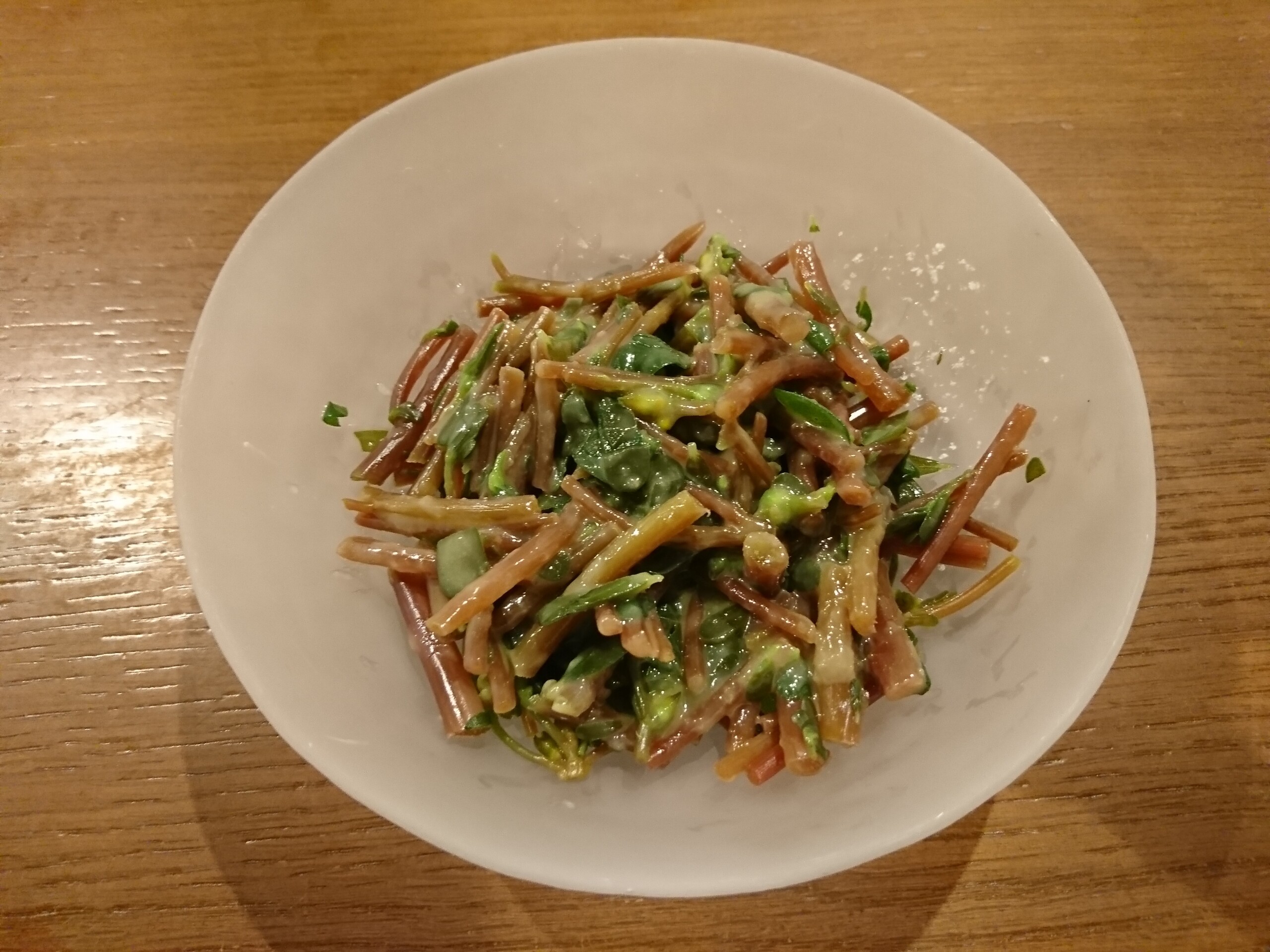 摘んで茹でて水に晒して醤油とカラシで和えるだけ!