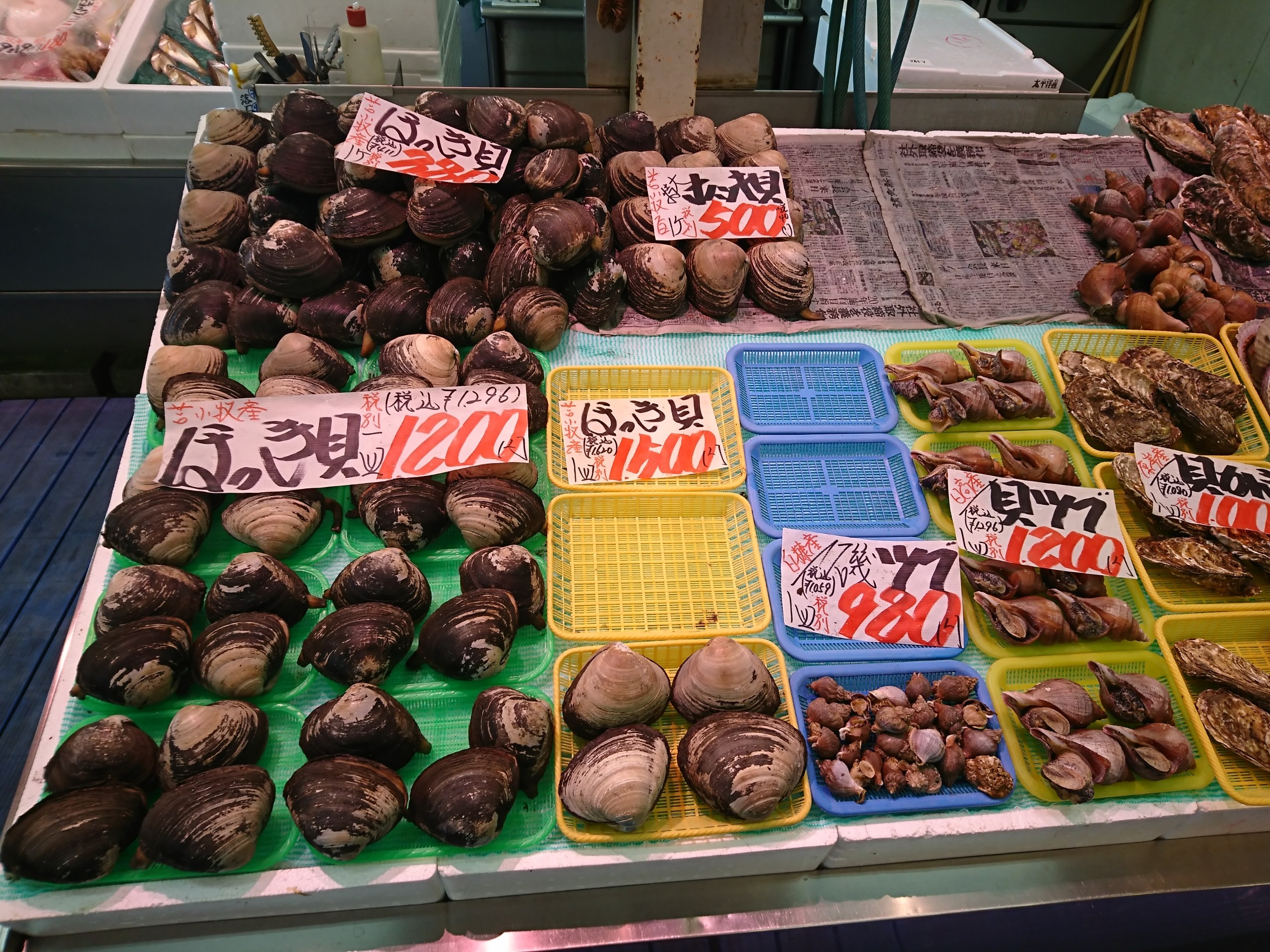 苫小牧はホッキ貝の漁獲量が日本一なので、鮮魚店ではたくさんのホッキ貝が売られていました。