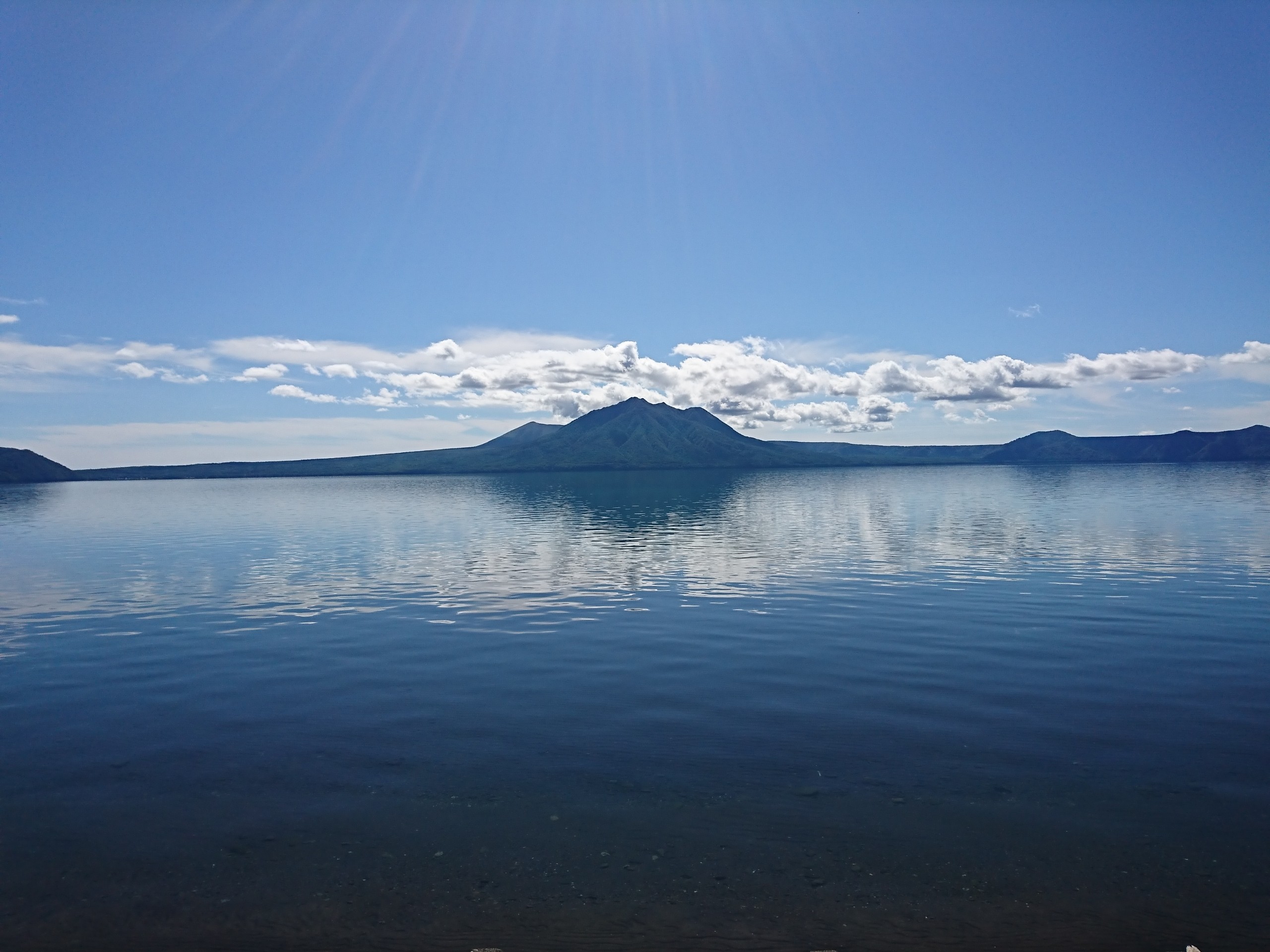 食後は国道276号を走って、千歳市内にある日本で2番目に深い湖・支笏湖に行きました。支笏湖は水が澄んでて綺麗でメチャ涼しかったです。