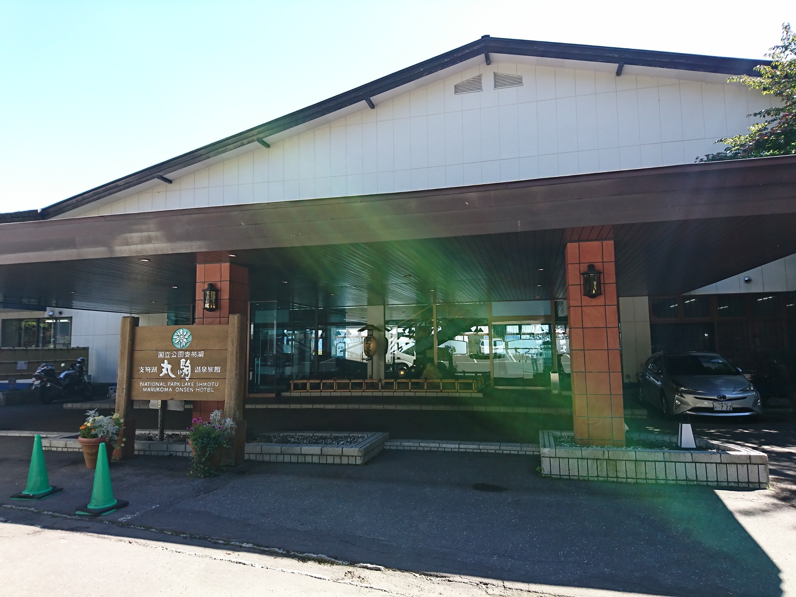 支笏湖の畔の道を進みやってきたのは丸駒温泉旅館です。