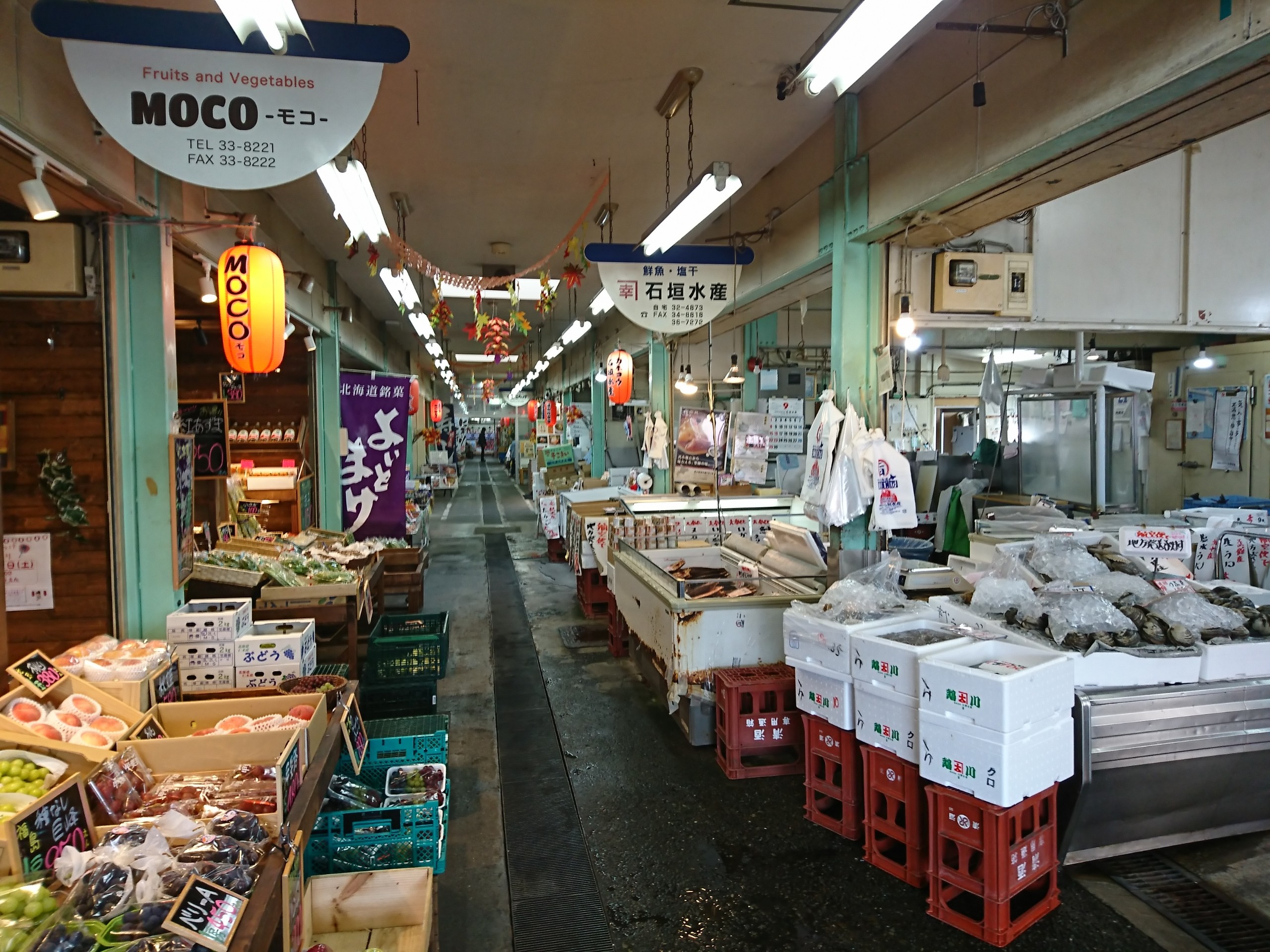 市場内には鮮魚店や海鮮丼などを食べさせてくれる飲食店が数十軒くらい入っています。