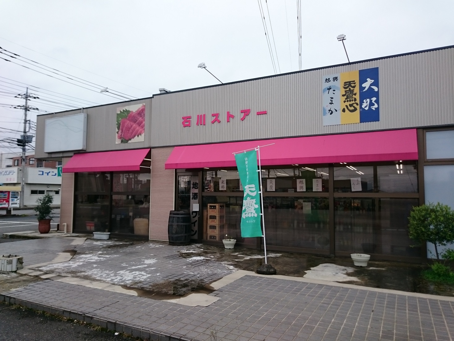 今日は那須塩原市西富山にある石川ストアーにマグロを買いに行きました。酒を買った店は石川商店で肴を買ったのは石川ストアーと、なんか紛らわしいけど、どちらも個人経営の店ですが別の店です。石川ストアーは刺身や惣菜・弁当・食料品を扱っていますが酒屋さんでもあり、地元の酒を中心に扱っていて、特に栃木県内でも特約店の少ない栃木の人気酒「大那」も取り扱っています。