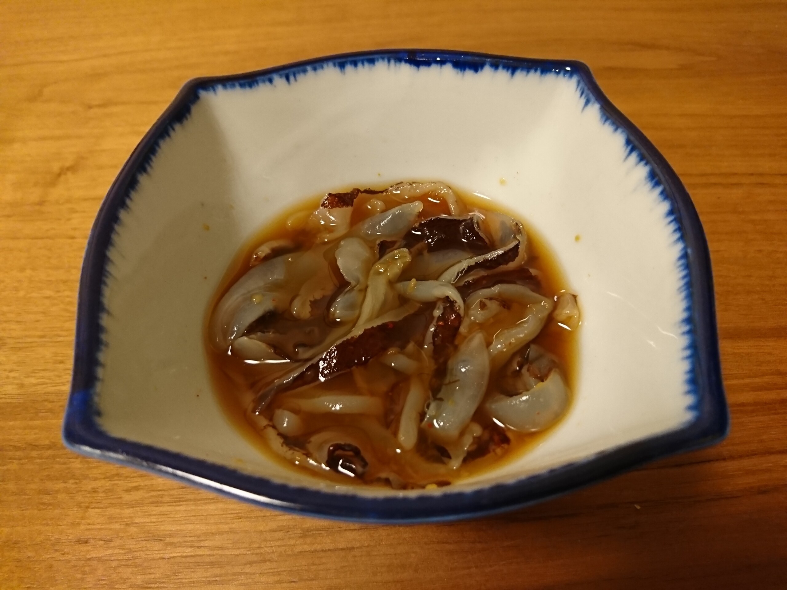 ポン酢にもみじ卸しを入れて数時間、味を染み込ましてから頂きます。食べた感想はコリコリとした食感でポン酢でさっぱり爽やかで美味しかったです。