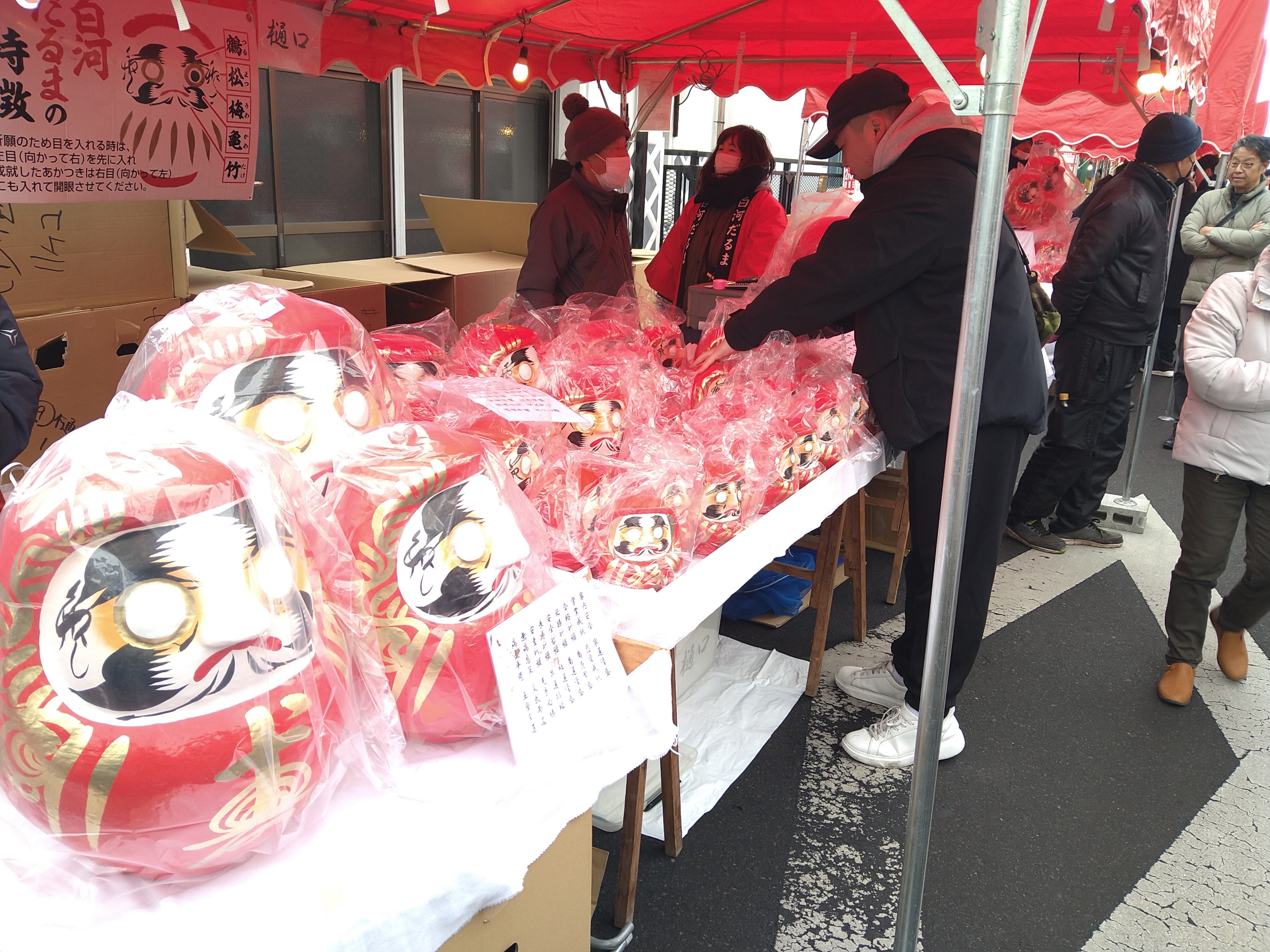 大小様々なたくさんのダルマが売られていました。