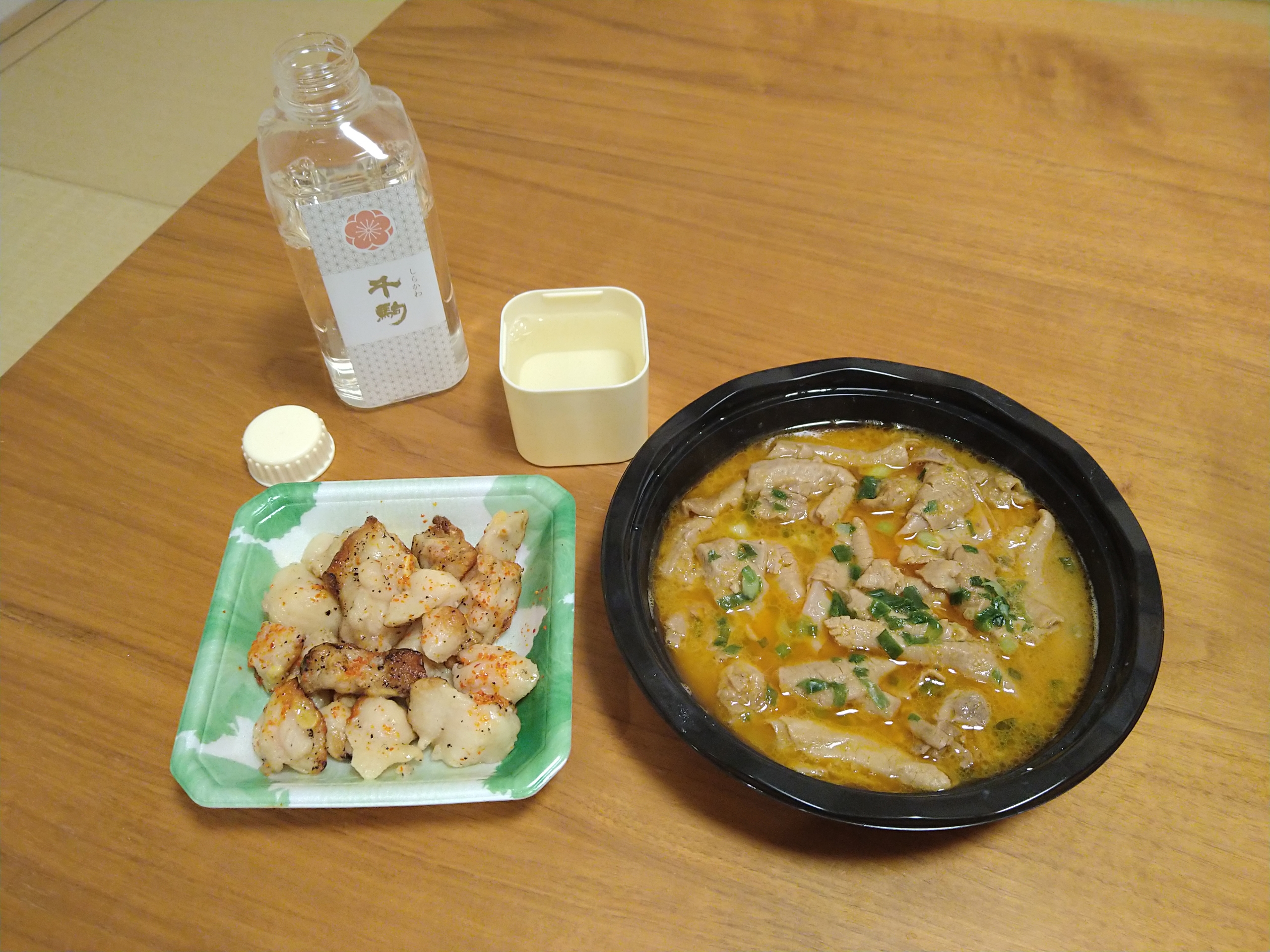 「今日の晩酌!VOL.1437」今日はJR那須塩原駅にある売店、NewDaysで394円で購入した、福島県白河市の酒蔵・千駒酒造の酒「しらかわ千駒・優等清酒ペットボトル」を飲みました。この酒、優等清酒らしいですが、酒は糖類・酸味料入りのバリバリの増醸酒です。飲んだ感想は淡麗の薄っぺらくて、苦辛い酒ですが糖類添加酒にありがちな甘くてベトベトした感じは無いものの、後味にアルコール辛さが残り舌がピリピリします。旨味が乏しく、水で薄めた甲類焼酎を飲んでる様な感じでイマイチでした。