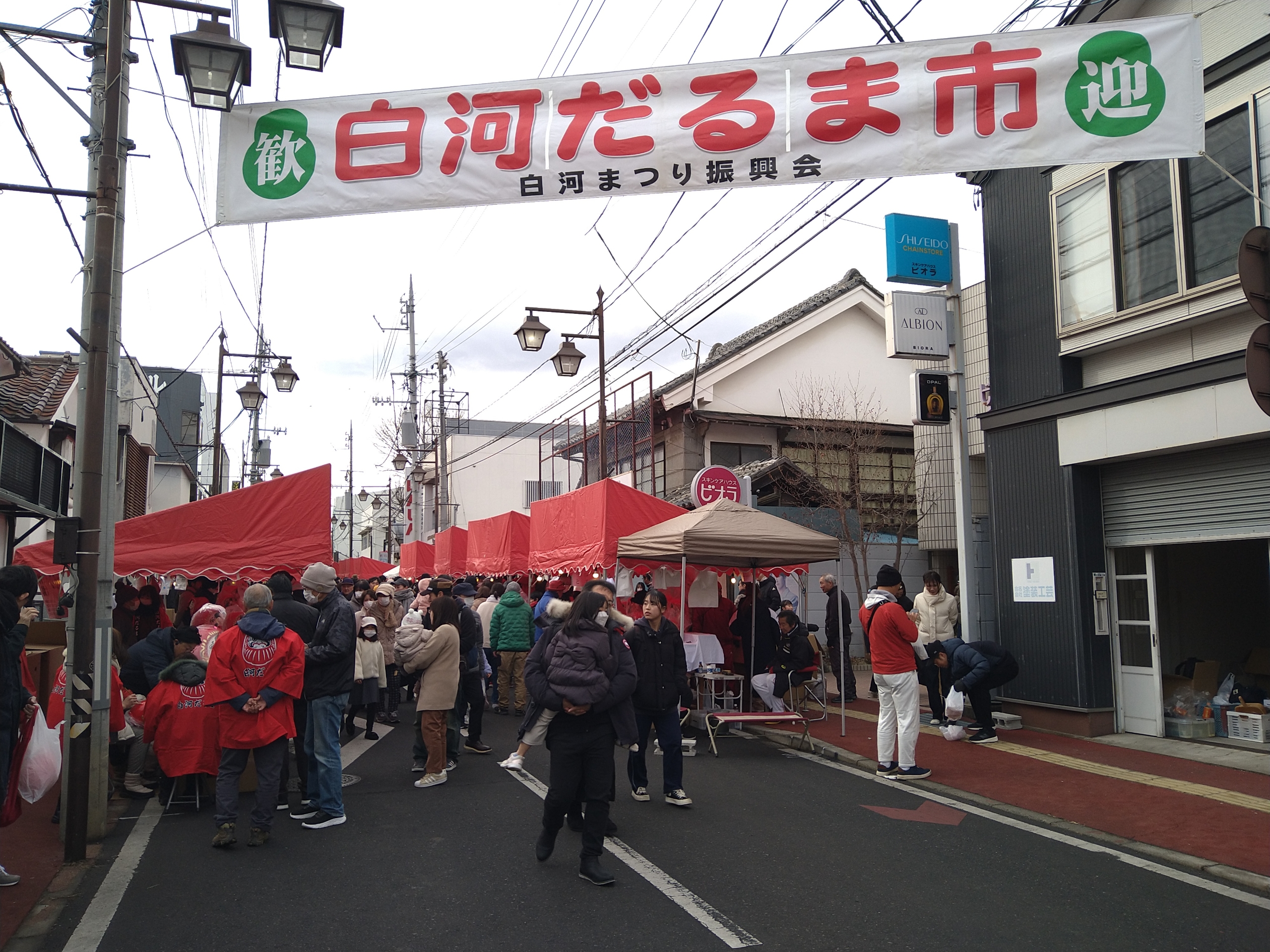 今年の白河だるま市は雨もやんで天気が回復したのでたくさんのお客さんで賑わっていました。