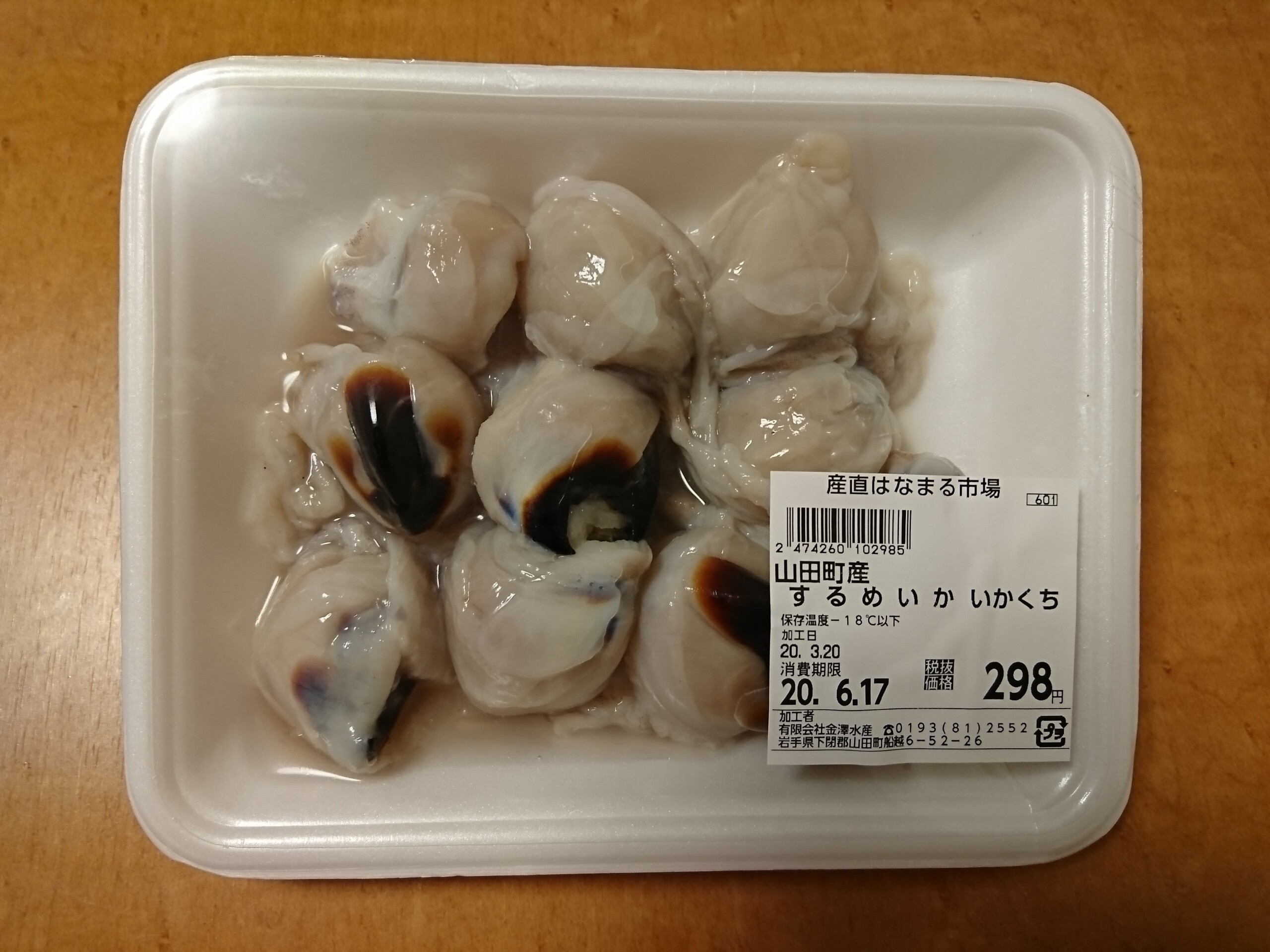 今日の酒の肴は山田町の産直はなまる市場で購入した、山田町産のするめいかのいかくちで、いかとんびとも呼ばれます。
