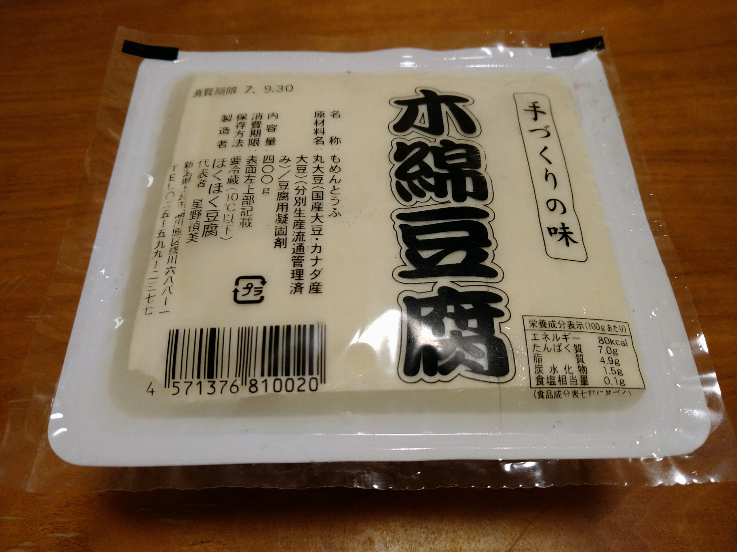 今日の酒の肴は上越市浦川原区のほくほく豆腐の木綿豆腐です。