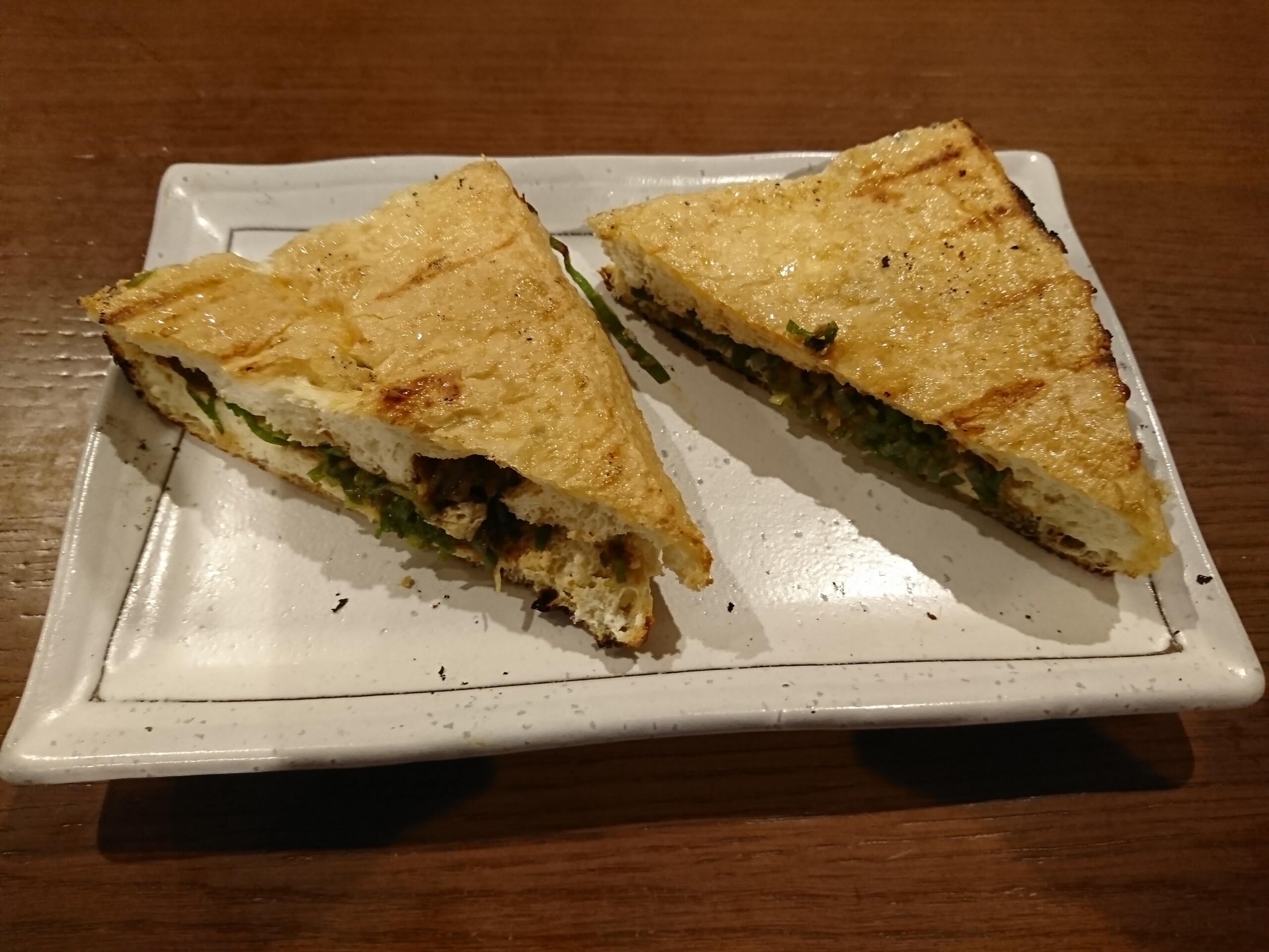 栃尾油揚げの真ん中に切れ込みを入れて、秩父名産の嘗味噌・おなめに刻みネギを入れて混ぜて油揚げに挟んで軽く焼いて食べました。栃尾油揚げは大豆の旨味がしっかりと感じられネギ味噌との相性が抜群でメチャ美味しかったです。これははまりそうですね