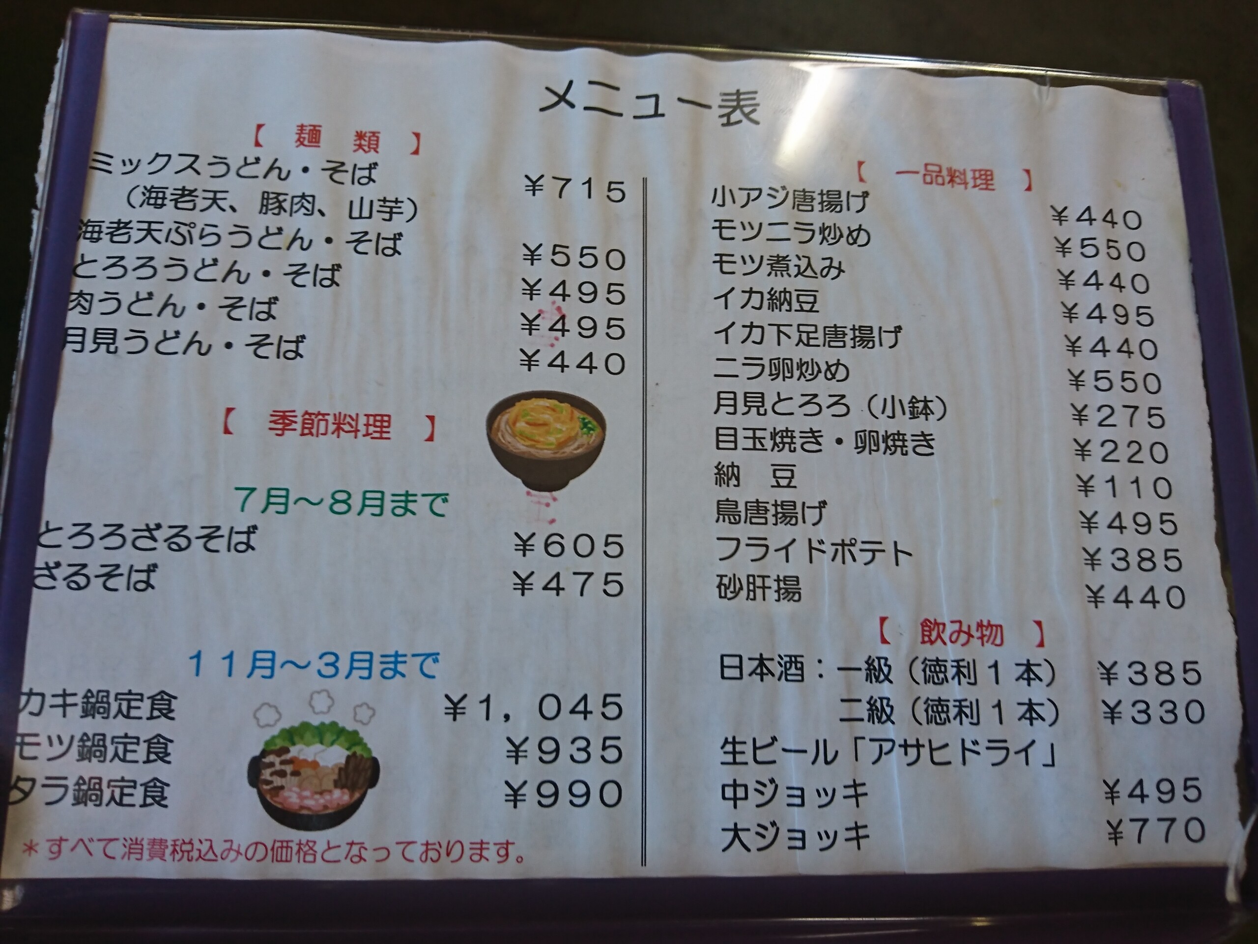 定食の他にはうどん・そばの麺類と冬季限定の鍋定食各種もあります。