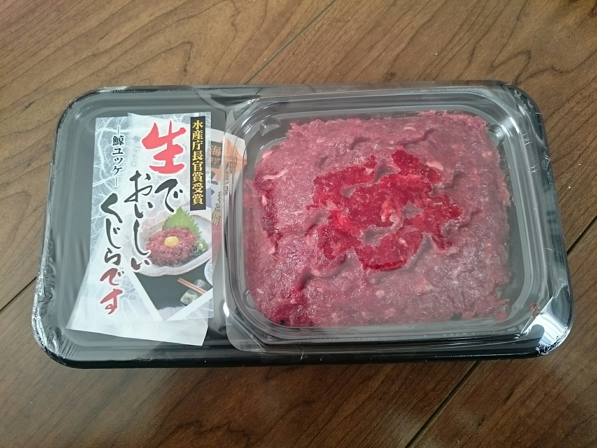 国産のミンク鯨の筋の多い部位などを滑らかなミンチ状にして食べやすくユッケ風にした商品だと思われます。その為、値段もお手頃で鯨資源を有効活用できる素晴らしい食べ物ですね。