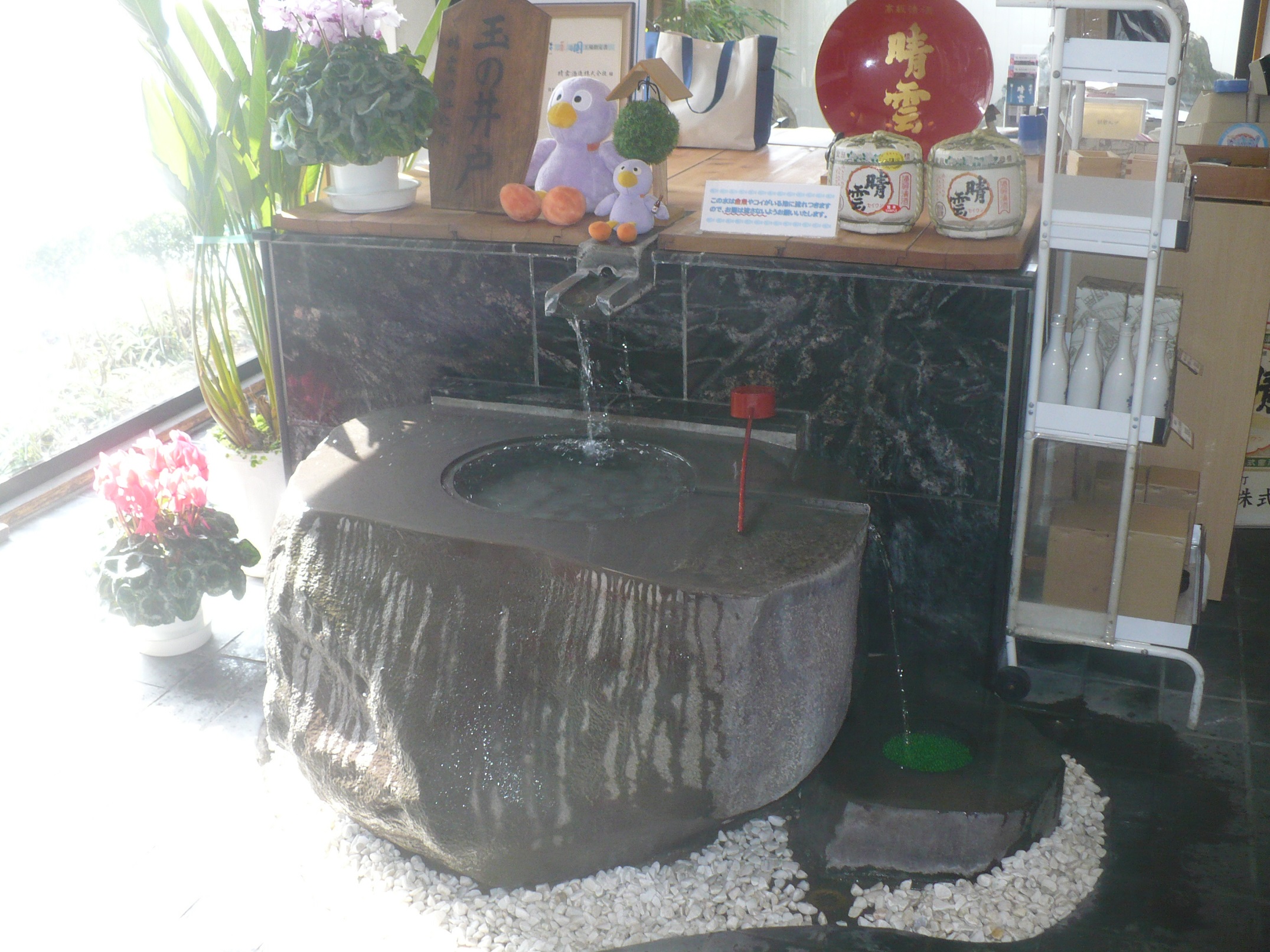 晴雲酒造の直売所の中には仕込水が湧き出ていて飲む事ができます。私も少しよばれましたが、比較的柔らかい水で美味しかったです。