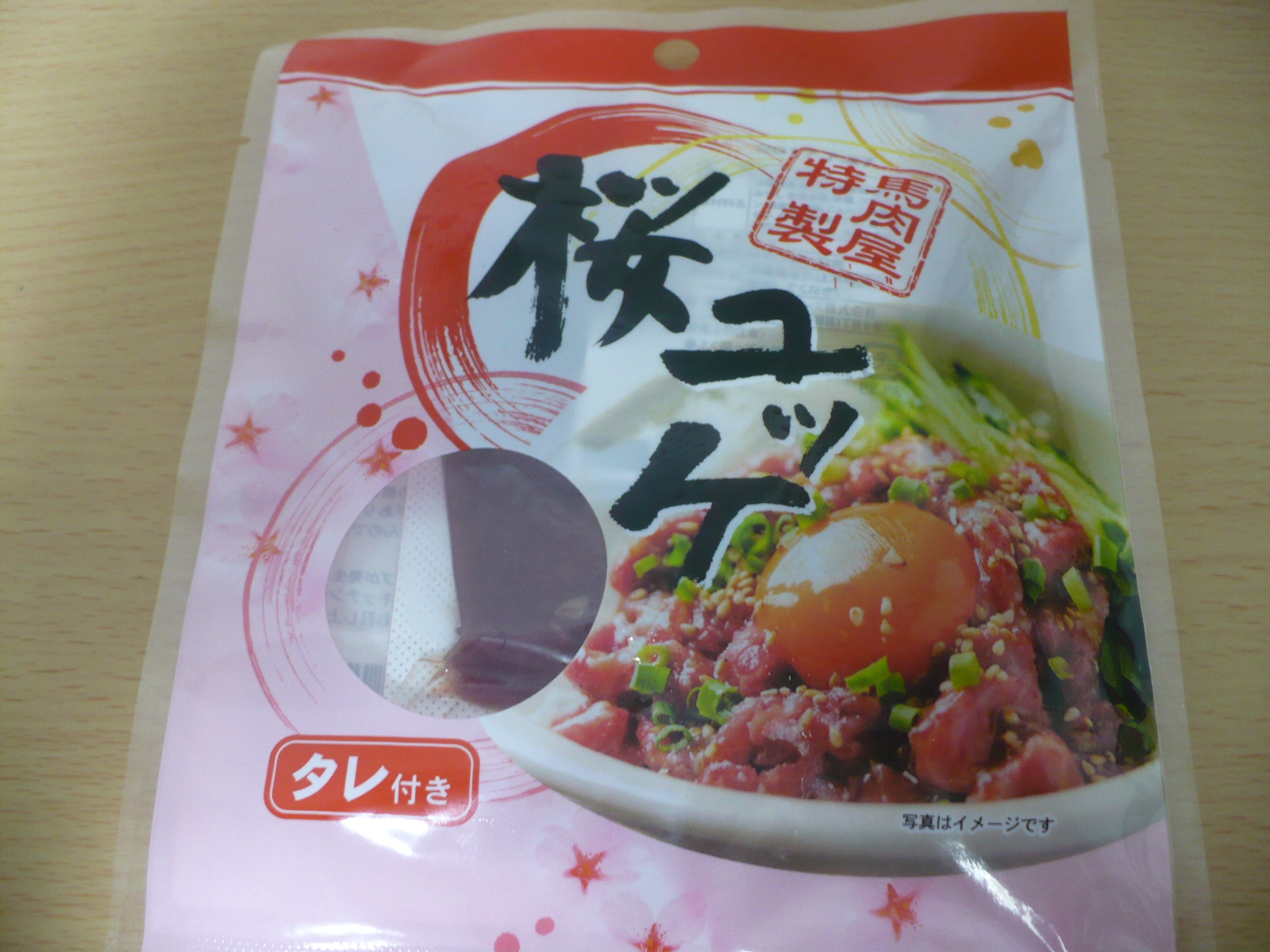 今日の酒の肴は矢板市にあるビックミート・矢板店で348円で購入した桜ユッケです。千葉県鎌ヶ谷市の馬肉を扱うNTCデリバと言う会社が製造しています。