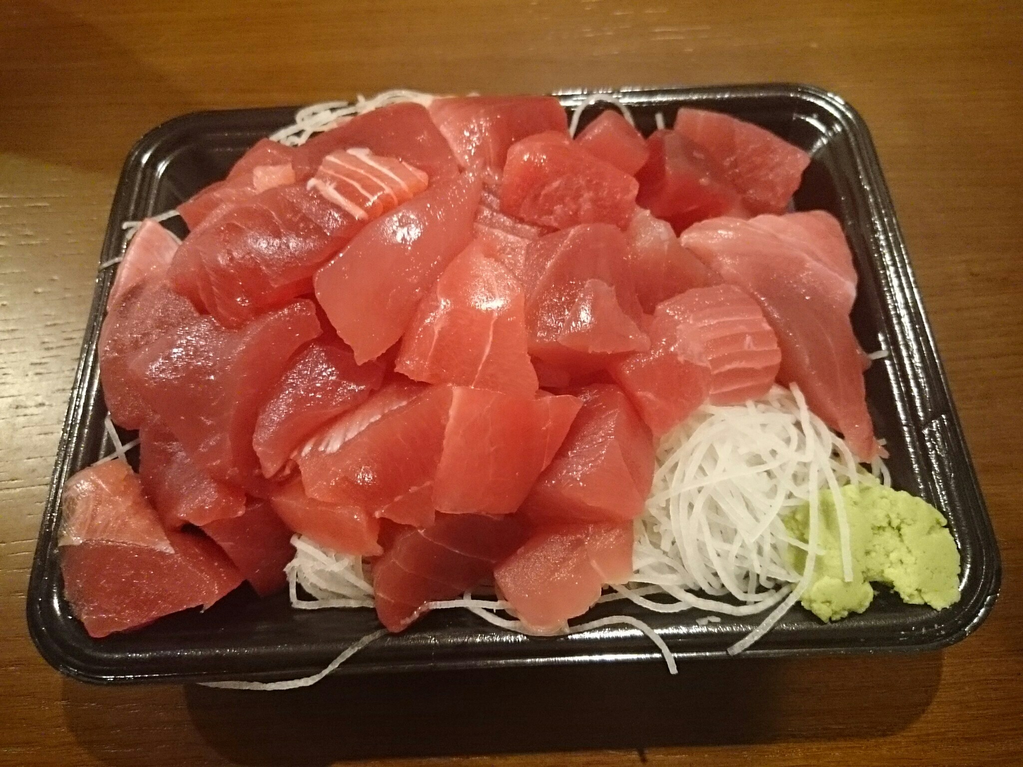今日、買ったのはマグロのぶつ(1080円)です。脂の少ない赤身の部位の切り落としですが、値段の割には結構、量があって脂が無い分、あっさりとしてて美味しかったです。