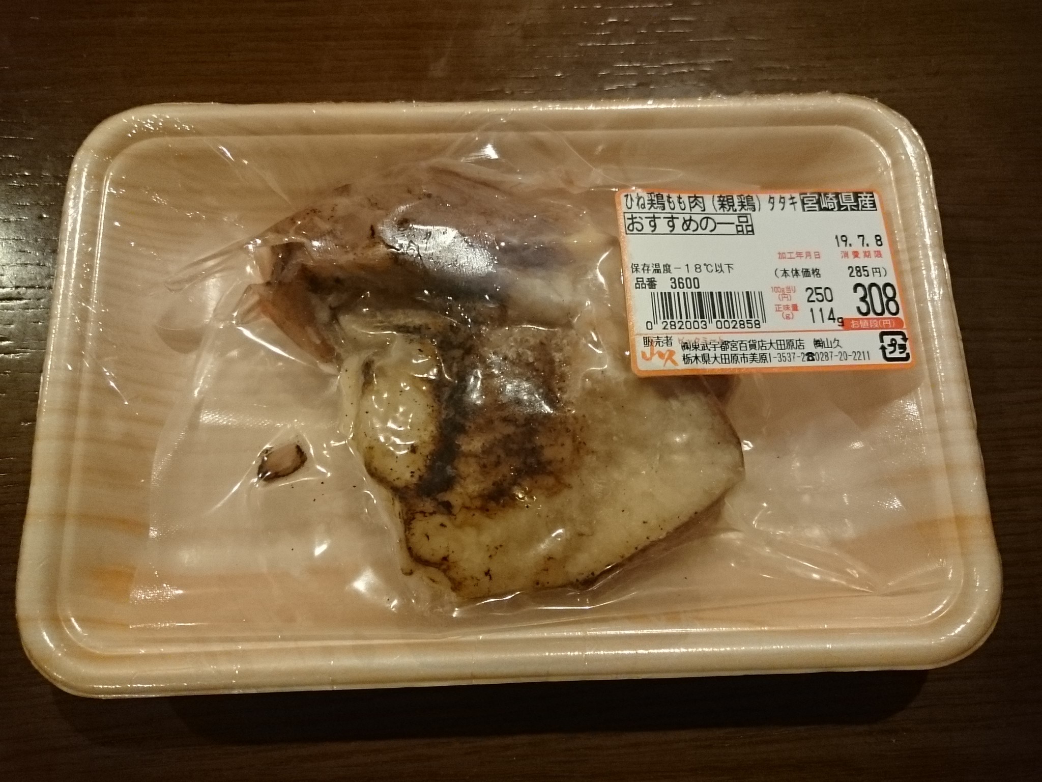 今日の酒の肴は宮崎県産の親鶏のタタキです。賞味期限が随分過ぎていますが、冷凍していたので問題ないでしょう〜