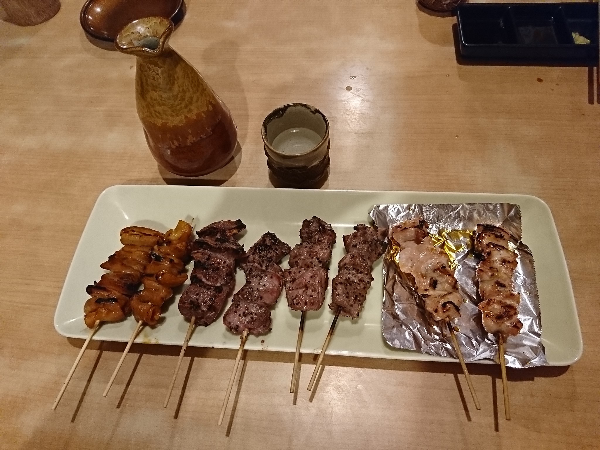 更に焼鳥を注文して酒は冷酒から冷やに変更しました。この那須のめぐみは冷酒より冷やの方が旨味が感じられ美味しかったです。
