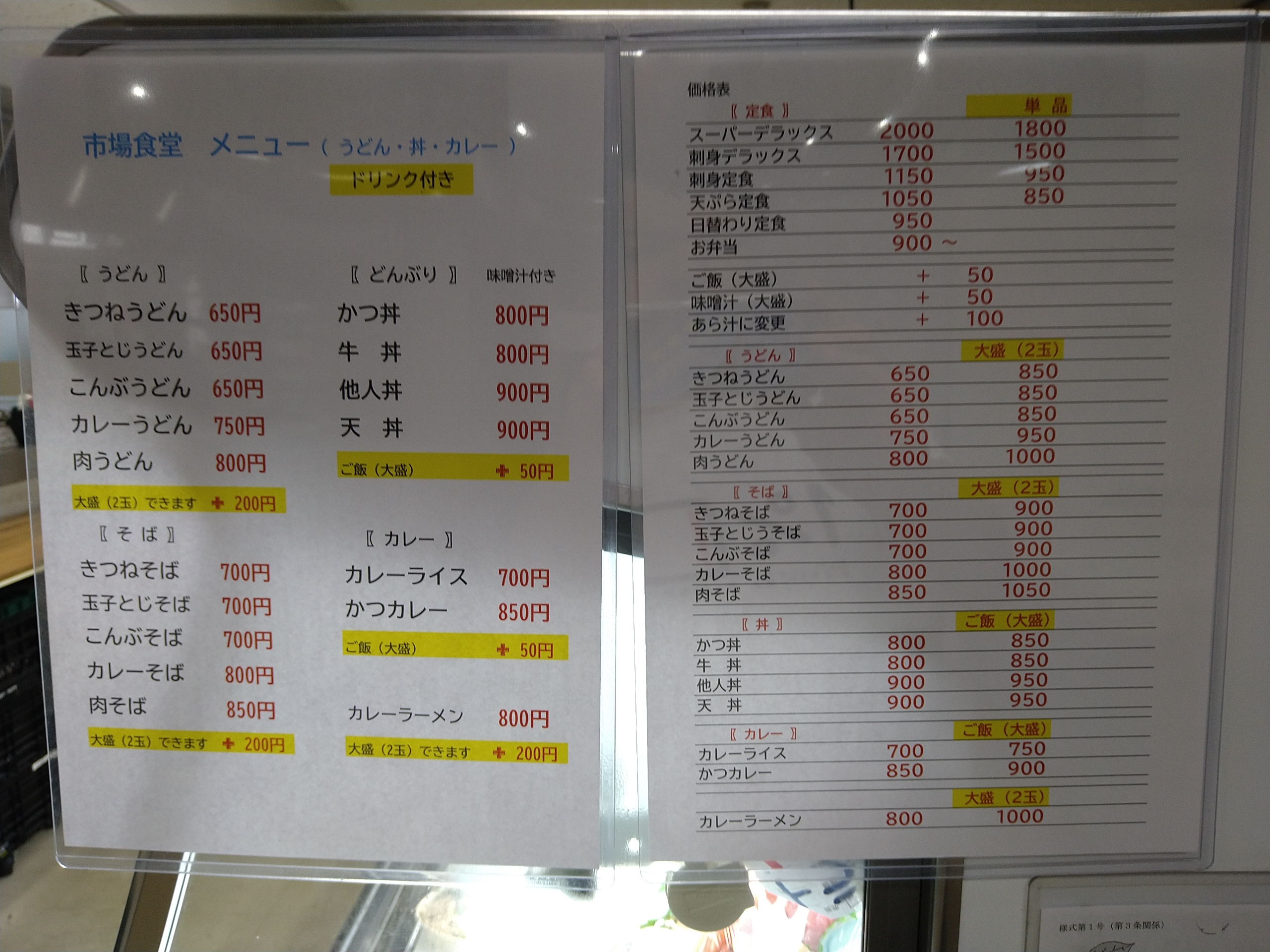 店内には大きな献立表が壁に掲げられています。物価高騰で以前訪れた時よりかなり値上げされていて、人気の焼肉定食は5年前は950円だったが、現在は350円上がって1300円となっています。1000円以下で食べれるメニューは麺類だけとなってしまいました。