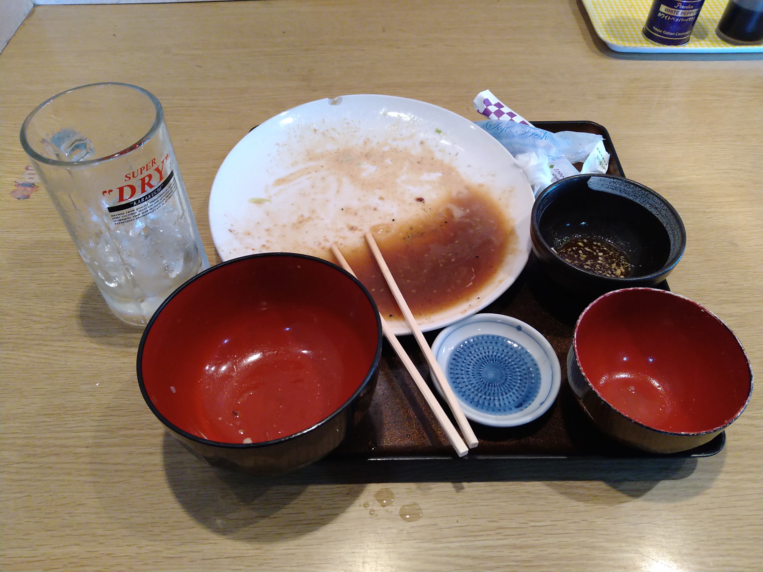 一緒に行った家族たちは皆、名物のホルそば定食(970円)を堪能していました。息子曰くホルそばはメチャ美味しかったらしいです。でもホルモンの量にバラつきあるみたいで、次男はホルモンが3つ入っていたのに対して長男は1つしかホルモンが入ってなくてぼやいていました。確かにホルモン焼きそばを注文してホルモンが1切れだけしか入ってないのはちょっと残念過ぎますね。まとめて複数人分を作ってると思われるので仕方ないのかなぁ・・・