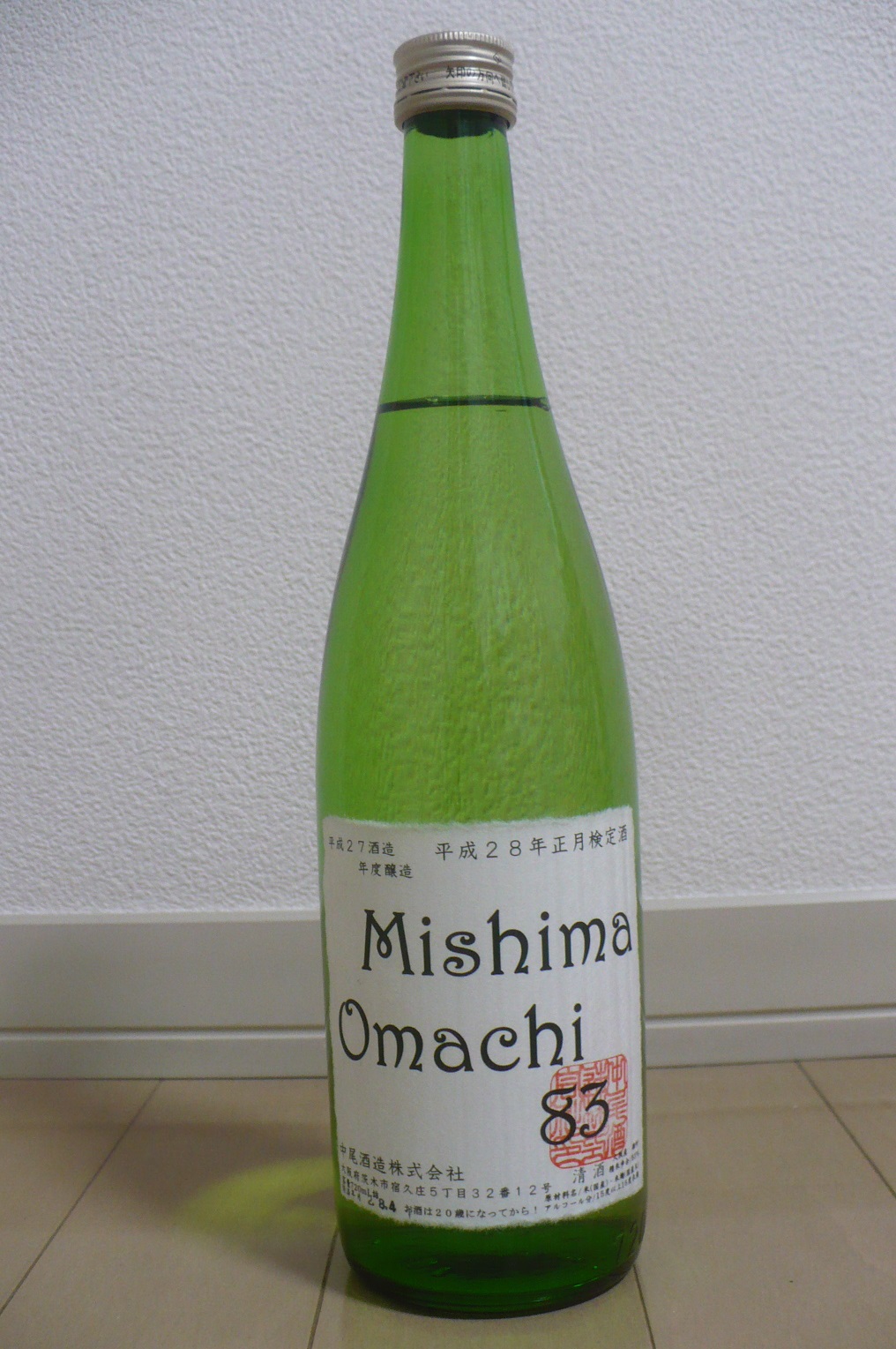今日は久々に大阪酒を飲みます!飲んだのは茨木市の酒蔵・中尾酒造で1404円で直売してもらった酒、「Mishima Omachi 83」を少し冷やして飲みました。この酒、ラベルには原料が米・米麹と書かれていて純米規格っぽいんんですが、ラベルに純米酒などの特定名称酒の表示がありません。でも大阪産雄町・精米歩合83%とは書かれています。またラベルに書かれている必須表示事項の文字が小さくて見づらいです!国税局の清酒の製法品質表示基準では、表示する文字は容器又は包装の見やすい所に明りょうに表示するものとし、表示に使用する文字は、8ポイント(日本工業規格Ζ8305(1962)に規定するポイントをいう。以下同じ。)の活字以上の大きさの統一のとれた日本文字とする。とありますが、明らかに文字が小さ過ぎます。恐らくルール自体を把握していないものと思われます。飲んだ感想はやや淡麗に感じる苦辛い酒でウィスキー樽で寝かした酒の様な、オーク樽っぽい木香を感じ雑味が多く荒い酒で飲み難いです。これは正直イマイチの酒で、来年の造りはもう少し頑張って欲しいですね。 それとラベルに「平成28年正月検定酒」と書かれていますが、正直「だから何?」って感じですね。逆に検定日が決まってては上槽日もある程度決まってくると思うので、その酒にあった上槽のタイミングも無視している様にも思えるんですが・・・ でも中尾酒造さんは酒蔵の少ない大阪で自醸して頑張っている酒蔵なので、大阪酒ファンとしては応援しているので頑張って欲しいですね。