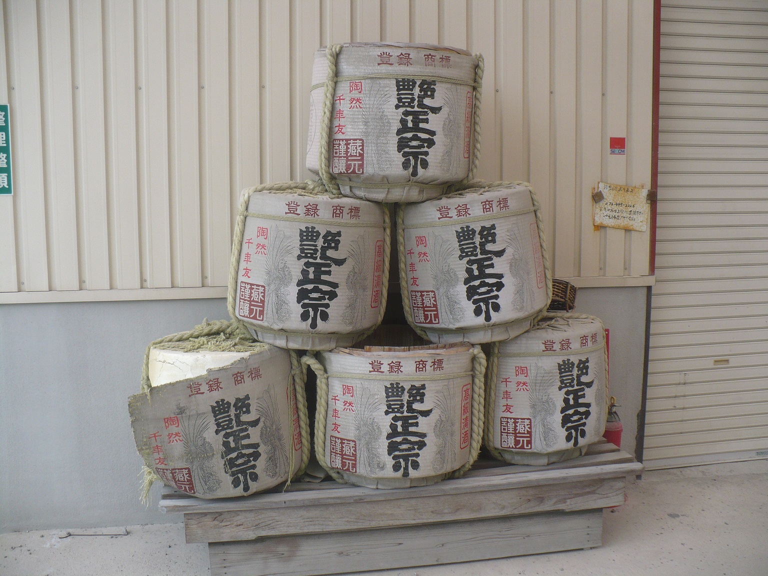 酒蔵の敷地内には穂谷の薦被化粧樽が無残に放置されていました。