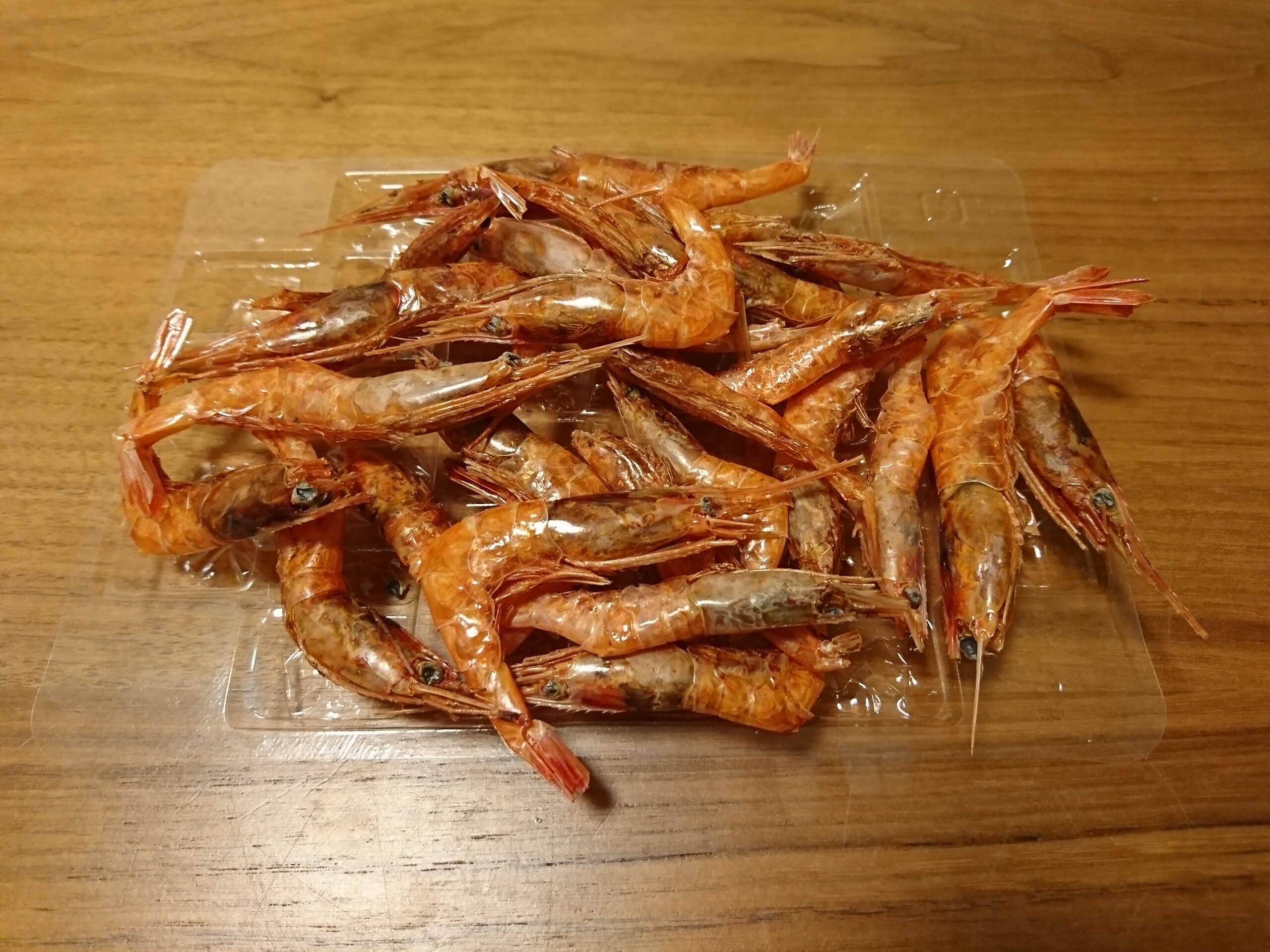 今日の酒の肴は日本海産の甘海老の燻製です。