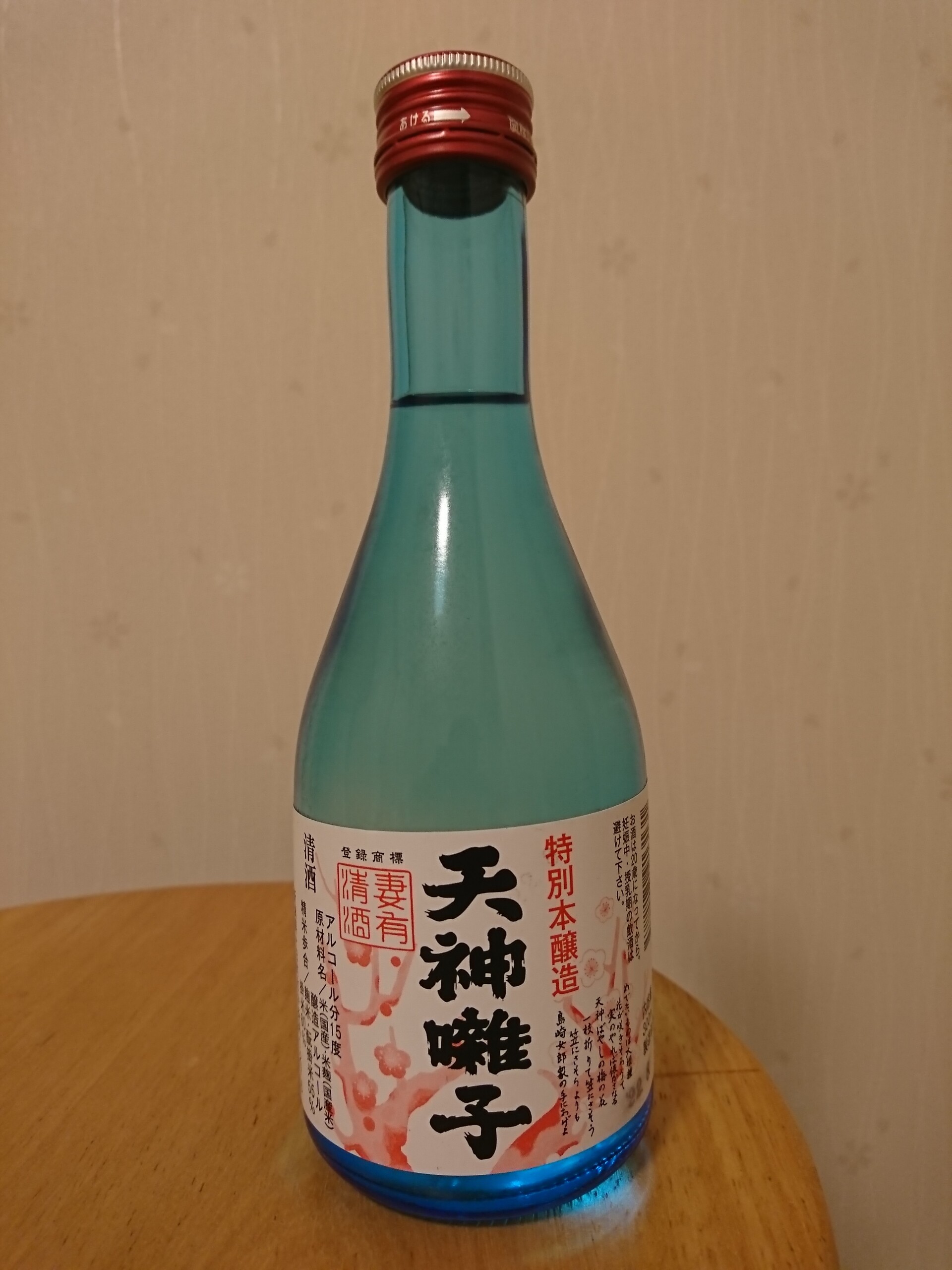 今日は新潟県十日町市の道の駅クロステンで420円で購入した、同市の酒蔵・魚沼酒造の酒「天神囃子・特別本醸造」を冷やして飲みました。酒の原料米の精米歩合は麹米と酛掛米が55%で掛米は60%に磨いています。飲んだ感想はやや濃醇な少し甘く感じる酒で後味は少し苦味とアルコール辛さがありますが、熟成した旨味を感じて結構美味しかったです。