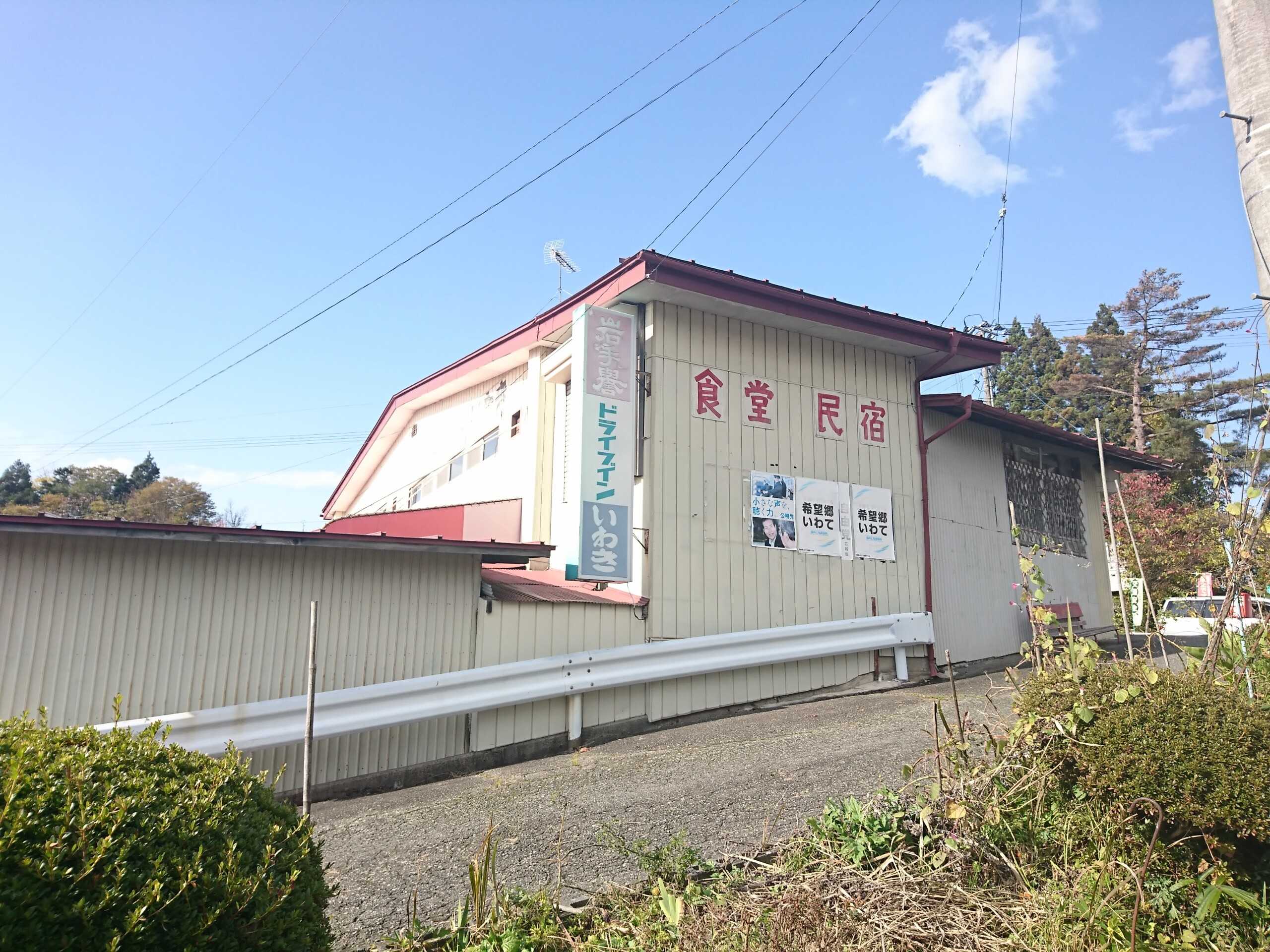 ドライブインいわきは食堂と民宿を営まれてるみたいですね。色あせた岩手誉の看板も昭和って感じがしますね。