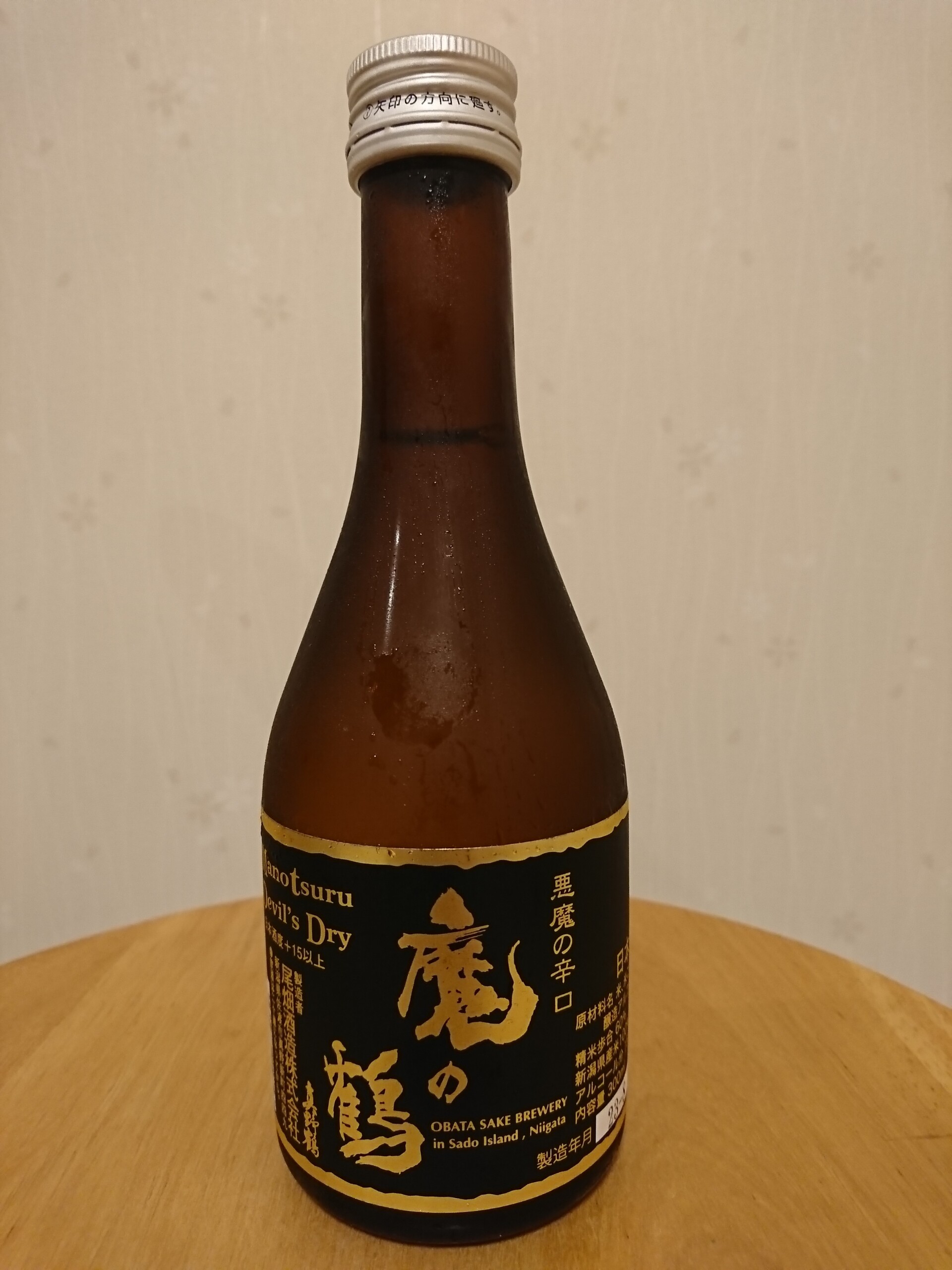 今日は佐渡島のスーパー・フレッシュマツヤ両津店で550円で購入した、佐渡島の酒蔵・尾畑酒造の酒「真野鶴・魔の鶴・悪魔の辛口」を冷酒で飲みました。この酒、精米歩合60%の新潟県産米を100%使用していますが、ラベルを見る限りでは特定名称酒の表示が無いので普通酒と思われます。日本酒度は+15以上となっていて大辛口のようです。飲んだ感想は淡麗のキリッとした大辛口のアルコール辛さがカーッとくる酒ですが、飲んでて辛さの中に熟成した旨味が感じられて大辛口なのに旨味のある酒でとても美味しかったです。◎