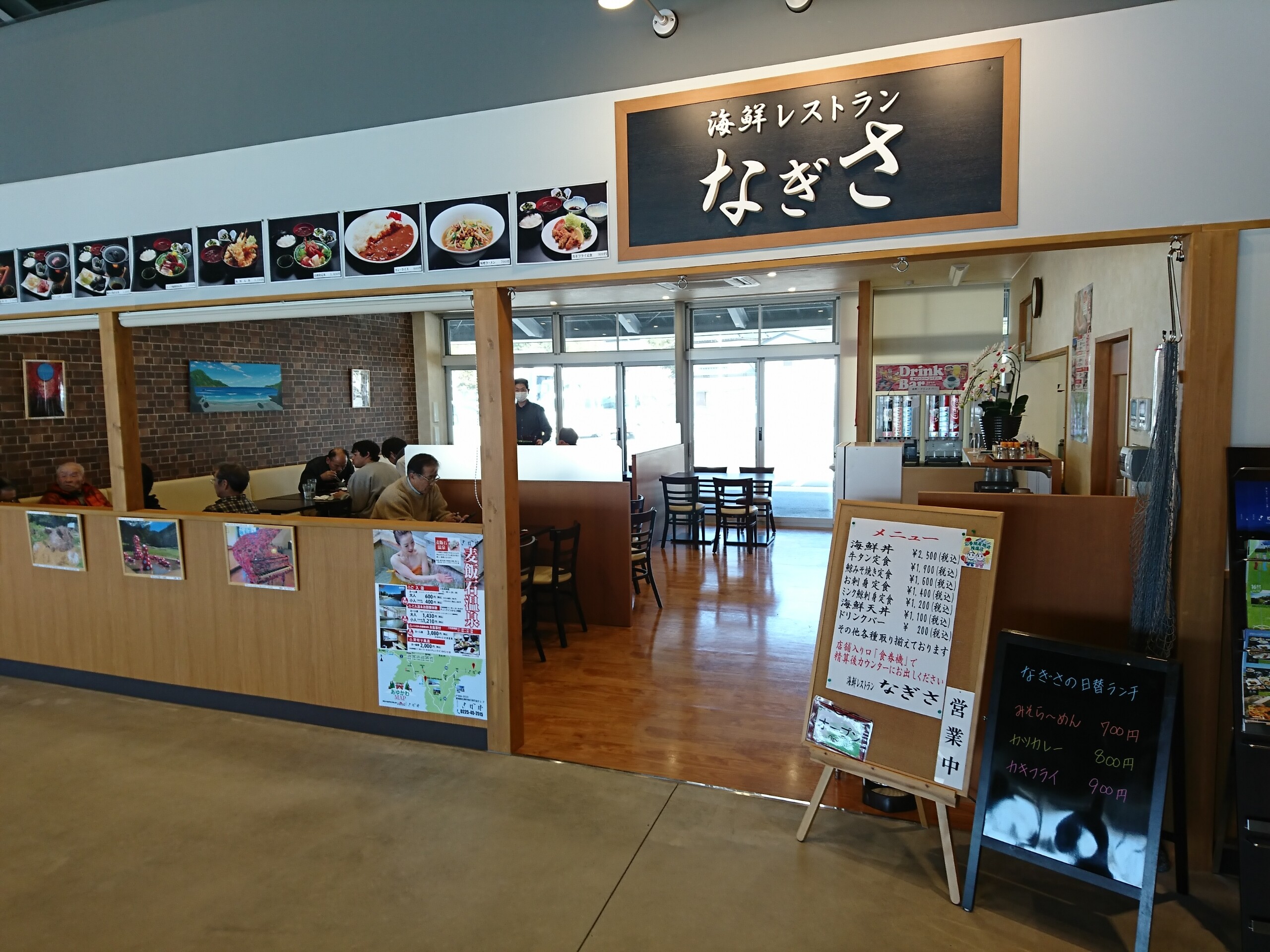 まずは施設内の海鮮レストランなぎさで腹ごしらえ!ここでは海鮮料理や鯨料理が手頃な価格で食べれます。またカレーやラーメン等の普通のメニューもあります。