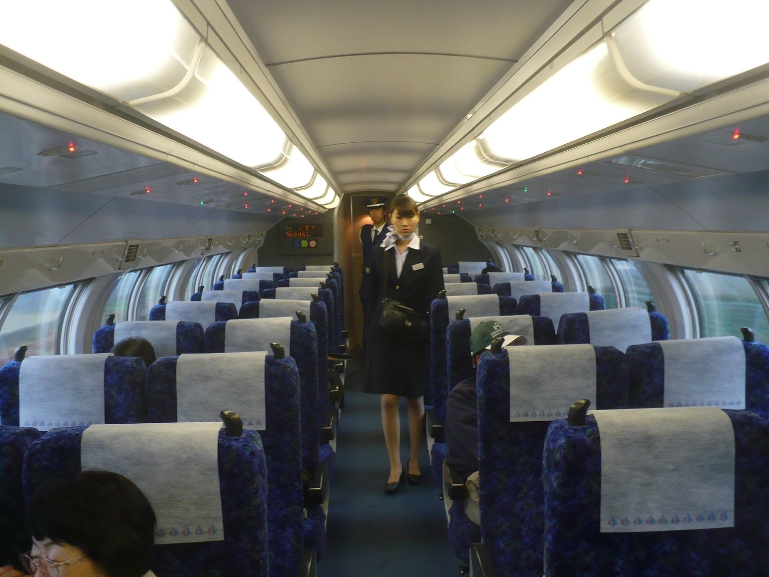 乗車して私は見晴らしが良い2階席に座りました。乗って少しして女性の乗務員が切符拝見に来ました。そしてその乗務員に警備員が付いて警護されているのには驚きました。グリーン車の車両は騒音が少なくて揺れも少なく、座席は倒せるしゆったりとしててとても快適でした。