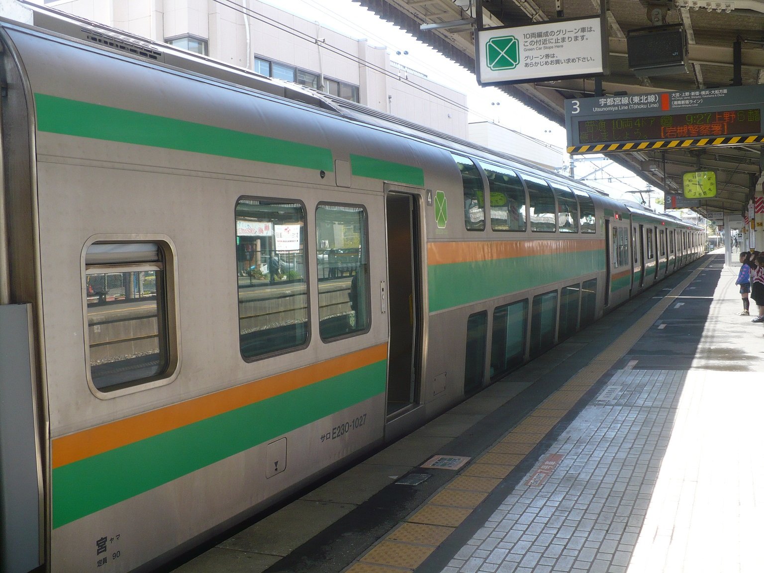 今週の日曜日に最寄り駅の西那須野駅から埼玉県蓮田市にある蓮田駅まで電車行きました。東北本線・黒磯駅発の普通列車には早朝発の上野行の3本だけにグリーン車が連結されています。以前から普通列車のグリーン車に乗ってみたかったので早起きをしてグリーン車に乗ってみました。