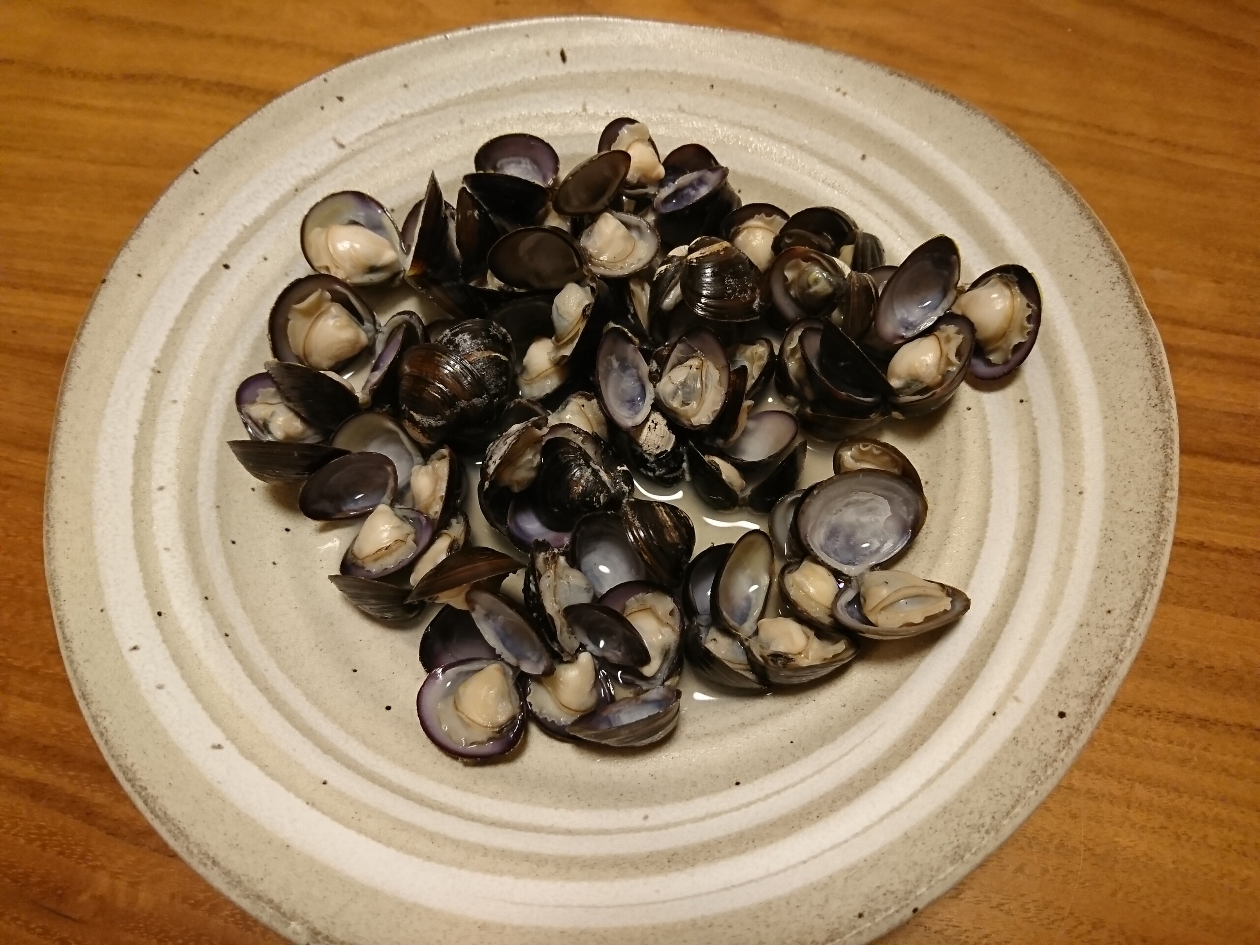日本酒と塩だけでシンプルにシジミの酒蒸しを作りました。身は比較的大きめで身はプリプリとしてて、濃いシジミの旨味があって美味しかったです。