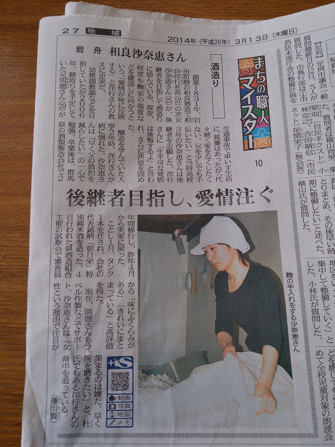 今回飲んだ相良酒造の記事が3月13日の下野新聞に掲載されていました。娘さんが学校で醸造学を学んだ後、他社の酒蔵で修行して実家に戻られたらしいです。将来は女性杜氏として活躍されると思うので、これからが楽しみの蔵でもありますね。頑張って美味しい酒を醸して欲しいですね。