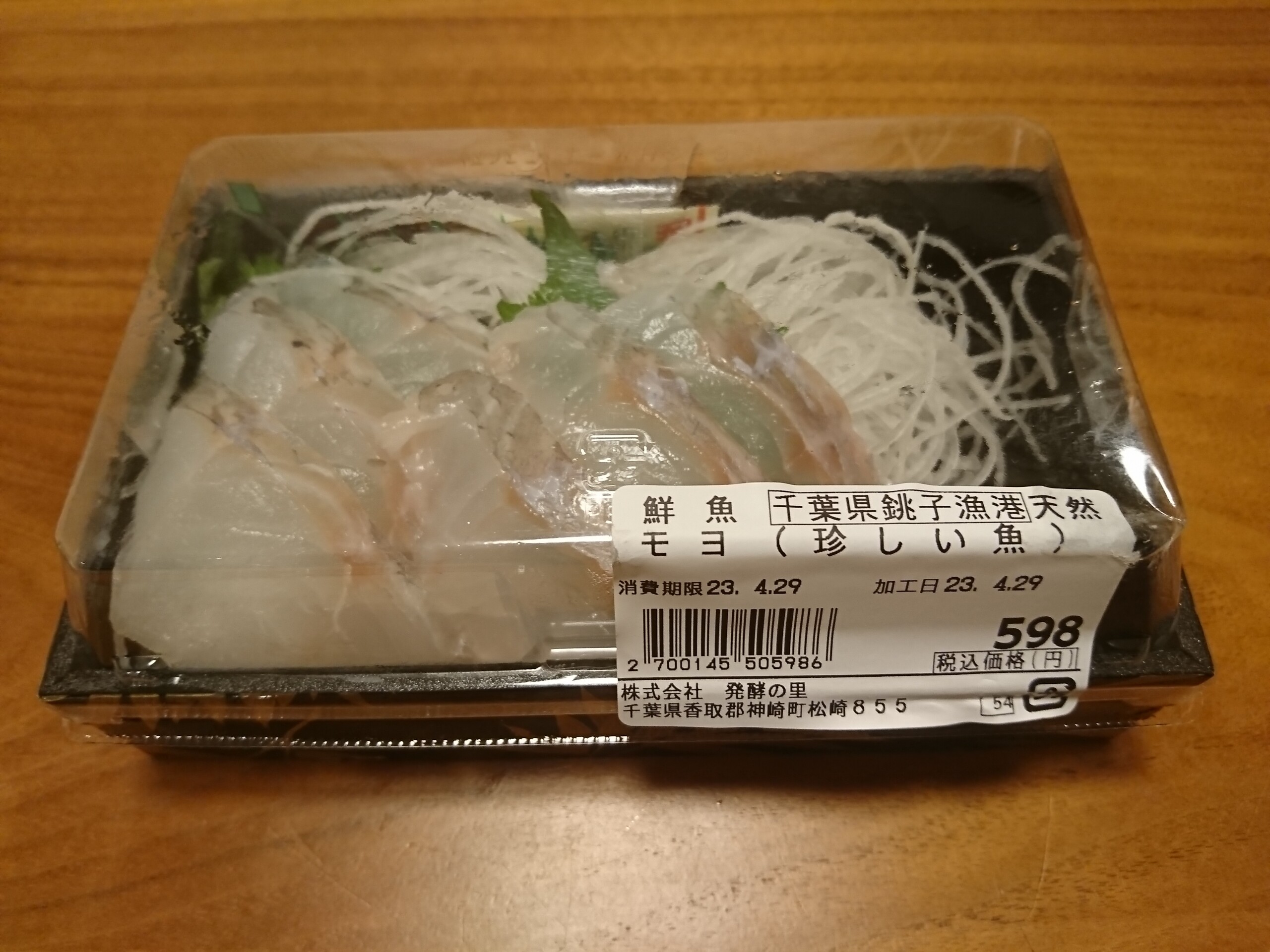 今日の酒の肴は千葉県神崎町の道の駅・発酵の里こうざきで買った千葉県銚子港産のモヨの刺身です。