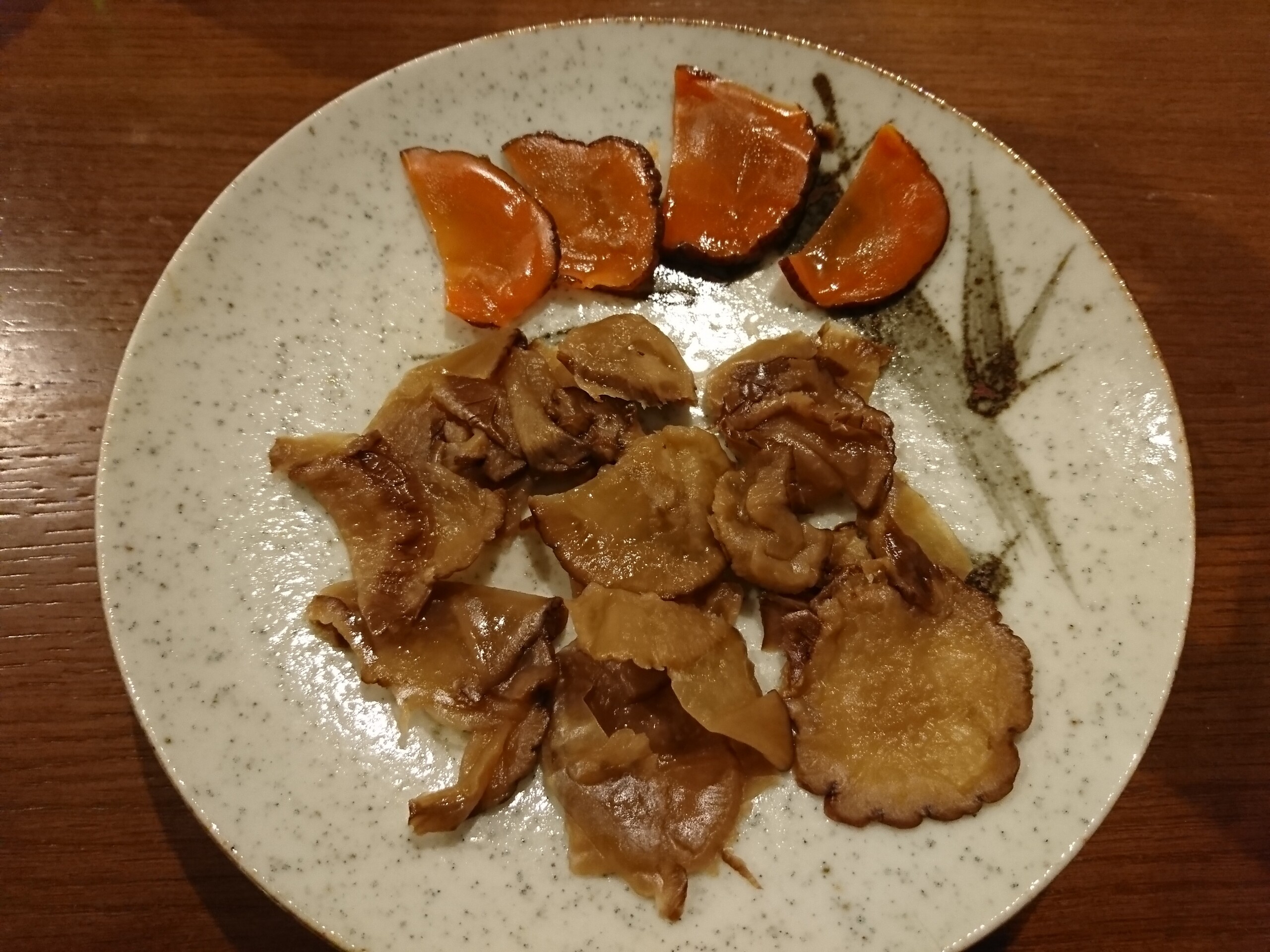 値段が安いので仕方ないが、この商品おそらくいぶりがっこの端の部分の切り落しやスライスに失敗したものだと思われます。形が不揃いですが、味は良く燻した香りとコリコリとした食感がたまりませんねぇ。酒の肴に最適でした。