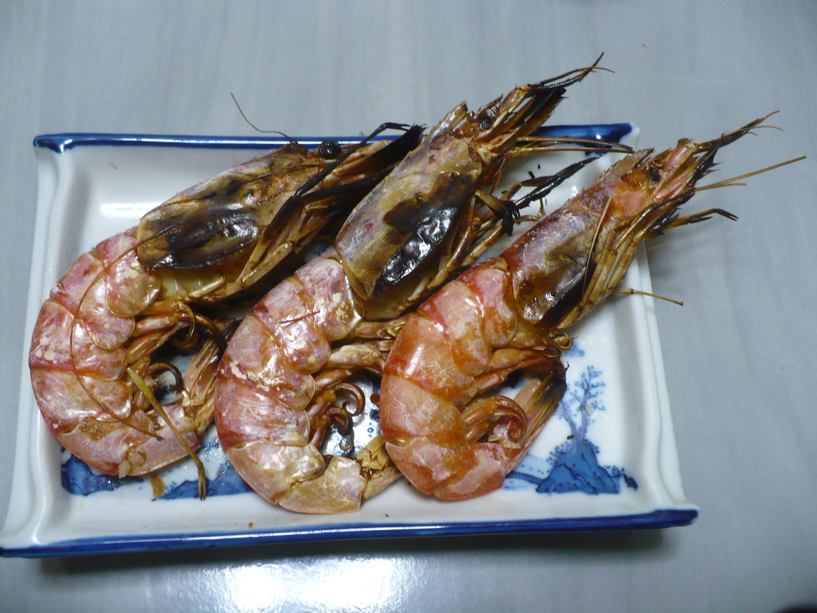 今日の酒の肴は近所のイオンで見切品で3尾98円で購入したアルゼンチン産のアカエビを網で塩焼きにしました。外産のエビやけど焼きたては甘くて身がプリプリして美味しい〜 やっぱエビは最高ですね!