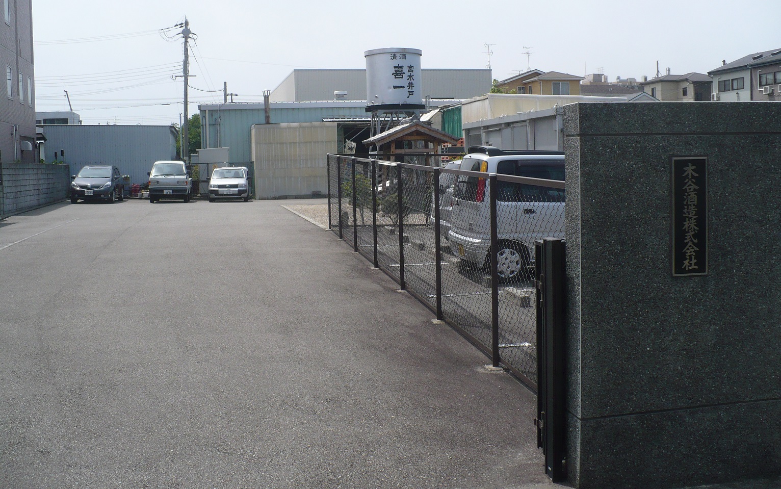 喜一の敷地内の様子です。宮水井戸の横の灰色の建物が事務所でした。宮水井戸を綺麗にされている様子がうかがえましたが、「喜一・宮水井戸」とかかれた銀色のタンクを画像を大きくしてよく見てください。上呑も下呑されていないので水は溜めれません!どうやらタンクは見かけだけの張りぼての様です。 奥のプレハブ調の倉庫には洗壜機とフィルタープレス型の濾過機がありました。木谷酒造は現在自醸はしていませんが、他所から原酒を桶買いして濾過・割水などの精製作業や壜詰は自分の所で行っている様子がうかがえました。でも本当に行っているかどうかは定かでない