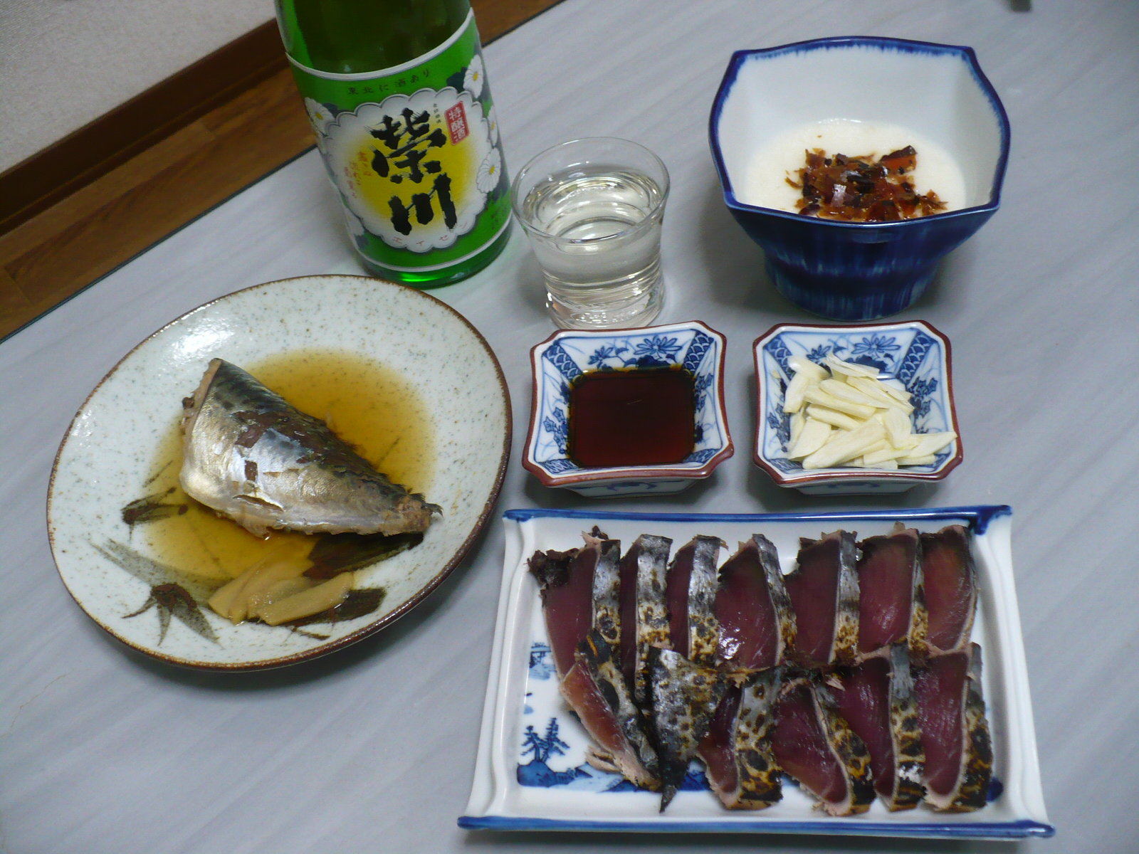 今日の酒の肴は鰹のタタキと山芋のトロロ。そして手料理の鯖の煮付けです。関西では鯖は醤油で煮るのが普通ですが、関東・東北地方では味噌煮が一般的だそうです。大好きな和食を食べながら日本酒を飲んでる時が最近一番幸せです。^^