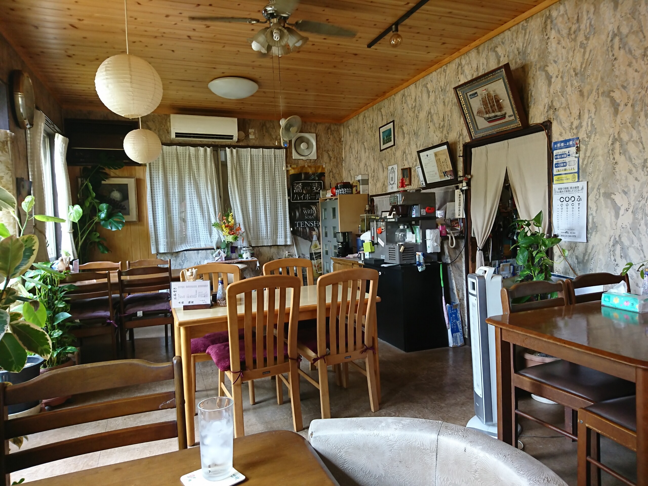 店内の雰囲気はこんな感じで、4人掛けのテーブル席が4席だけの小さなドライブインです。