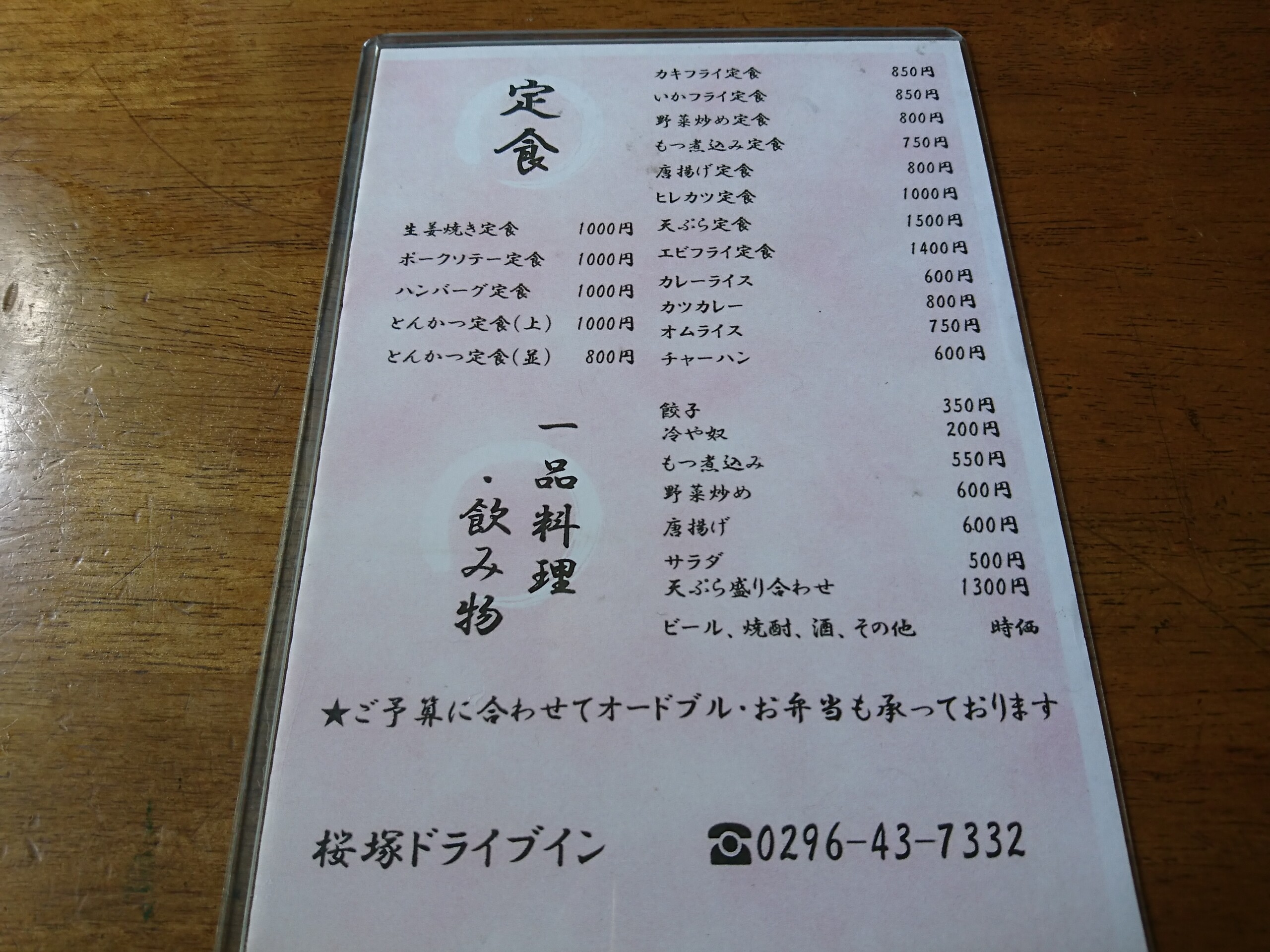 店の建物自体には屋号は書いてませんが、敷地内の木の下にひっそりと「桜塚ドライブイン」と書かれた古びた看板があります。