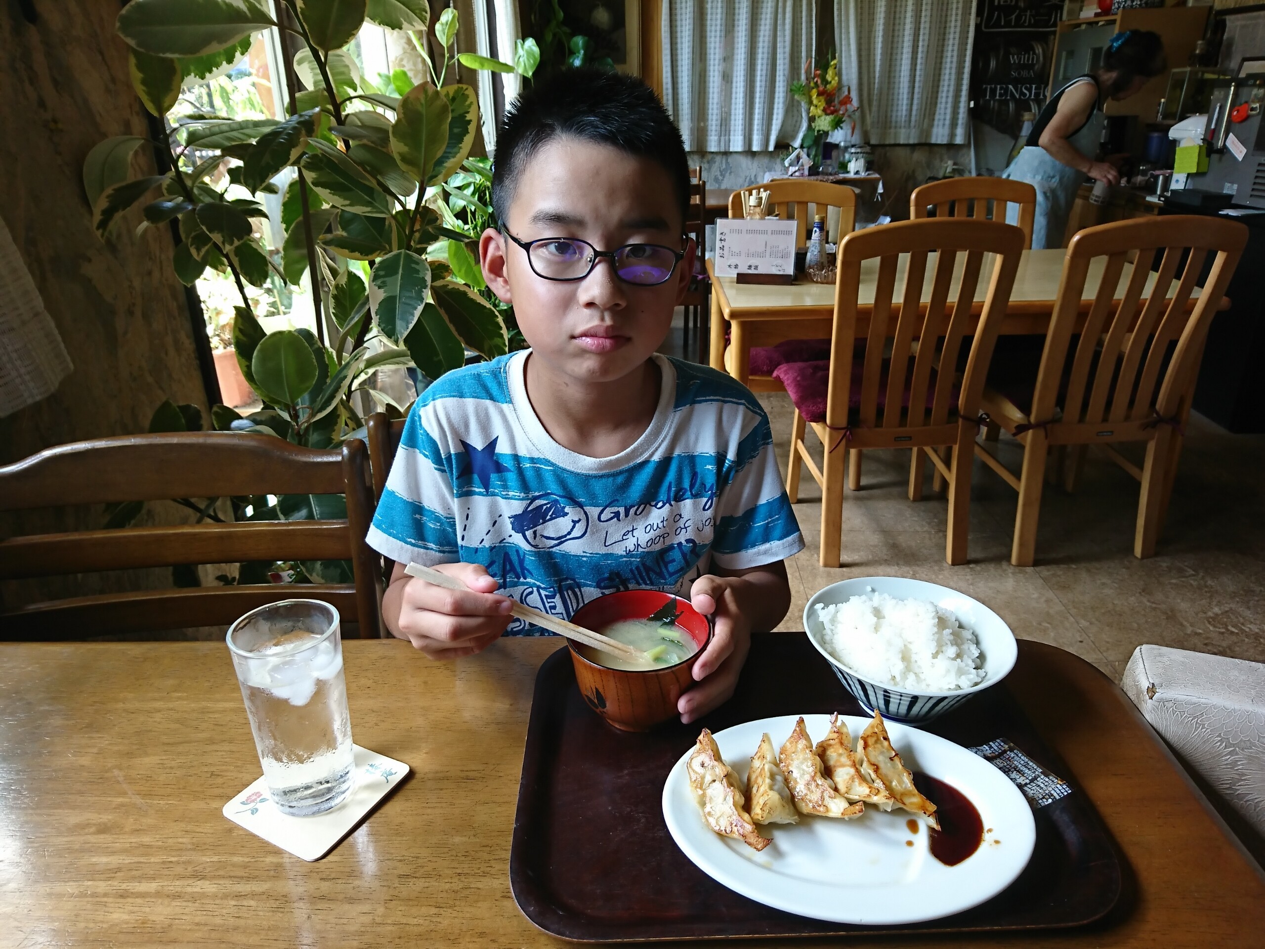 息子は餃子が好きなんでシンプルに餃子ライス(550円)を注文〜
