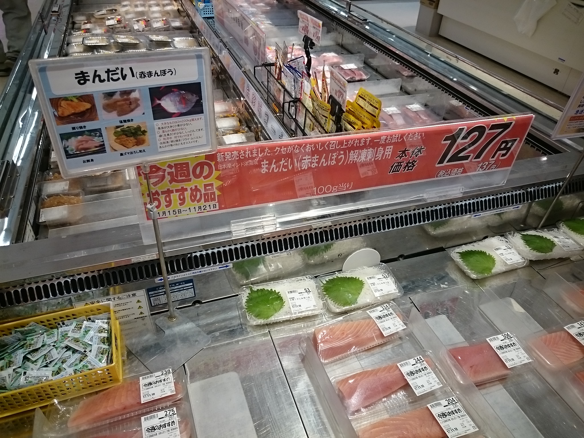 店内のポップに赤まんぼうの紹介がありました。大きなものは2mで200kgを超えるくらいあるそうです。見た目は深海魚っぽいですね。