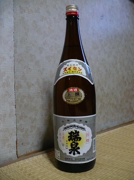 今日は鳥取県岩美町の酒蔵・高田酒造場で370円で購入した酒「瑞泉・上撰」を飲みました。酒は糖類無添加の普通酒でアルコール度数は15度台です。飲んだ感想はやや淡麗のキリッとした辛口の酒で飲んでて力強さがあり飲みごたえがあります。グラスに注ぐと酒に少し色が付いていたのですが、飲んで納得、辛さの中に熟成した旨味が感じられメチャ美味しかったです。