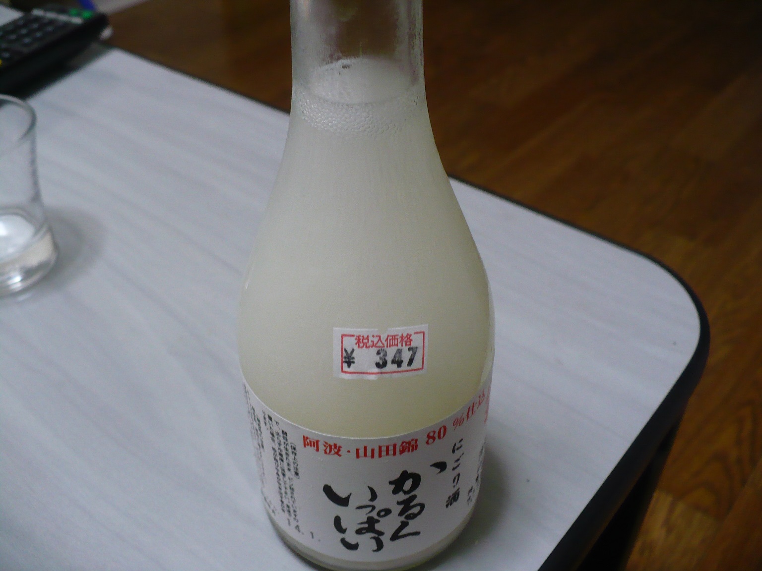 グラスに注ぐとこんな感じ!精米歩合80%でも山田錦なので真っ白ですね。アルコール度数は10度台で低アルコールなんです!飲んだ感想は淡麗の辛口の酒で炭酸がメチャ効いててシュワシュワと炭酸飲料みたいです。酒に炭酸ガスが多いので後味には苦辛さが強く舌に残ります。アルコール度数が低いせいもあってか?うまみはほとんどありませんが、発泡性のにごり酒としては値段も安いし、また韓国で飲む生マッコリに似た様な味わいで、これはこれで美味しかったです。もしかしたらこの酒、辛い韓国料理との相性が良いかもしれませんね。