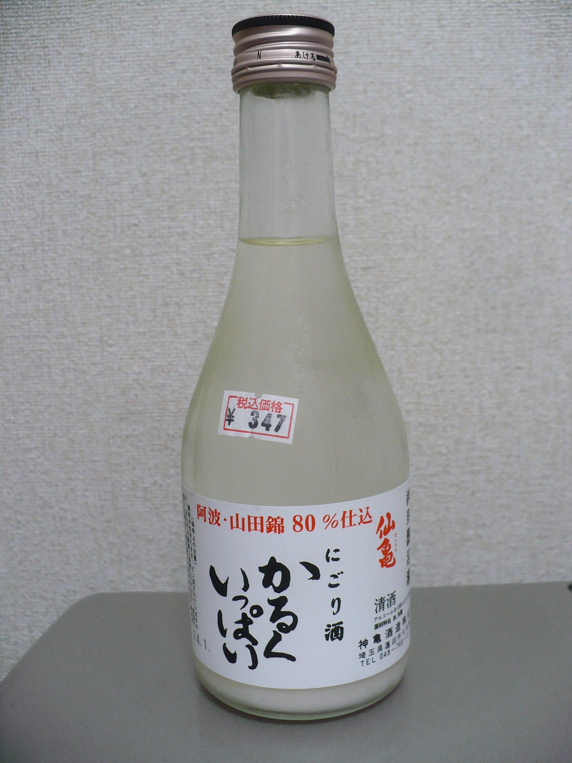 「今日の晩酌!VOL.1074」今日は埼玉県蓮田市にある日本初のオール純米蔵を実現した蔵元・神亀酒造の酒「仙亀・にごり酒・かるくいっぱい」を冷やして飲みました。酒は蓮田市内にある酒屋さん・今宮酒店で347円で購入。この酒、精米歩合80%の阿波山田錦を使って仕込んだ酒で、原材料名は米・米麹としか書かれていないので純米酒だと思いますが、ラベルに純米酒とは一切書かれていません。