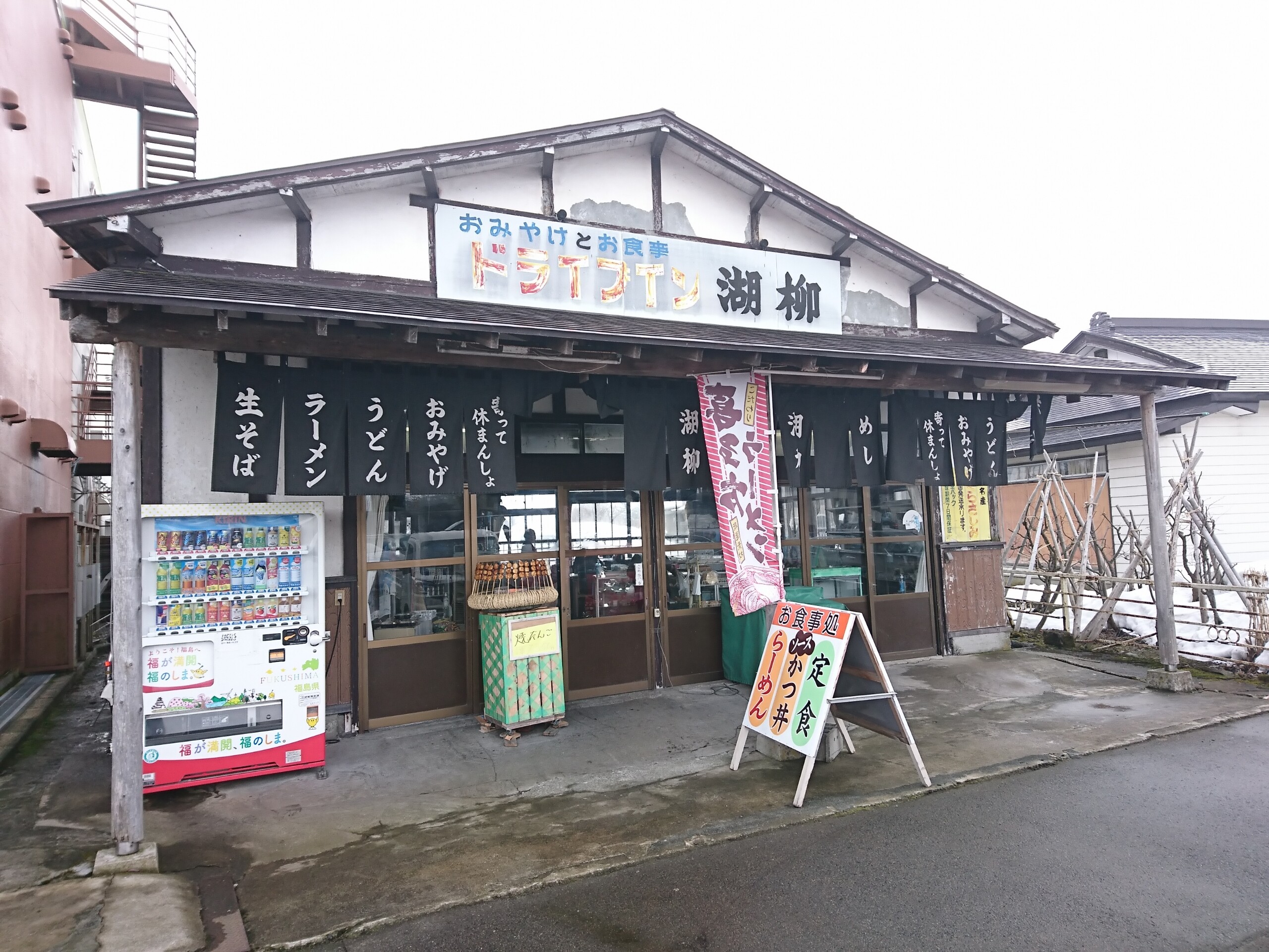 今日は先週、会津ツーリングの時に福島県猪苗代町のドライブイン湖柳に行ったので紹介します。ドライブイン湖柳は国道49号線沿いにあり、隣には野口英世記念館、店の前には会津磐梯山と裏側には猪苗代湖が見える良い立地にある観光客相手の昭和の雰囲気が残る観光ドライブインです。