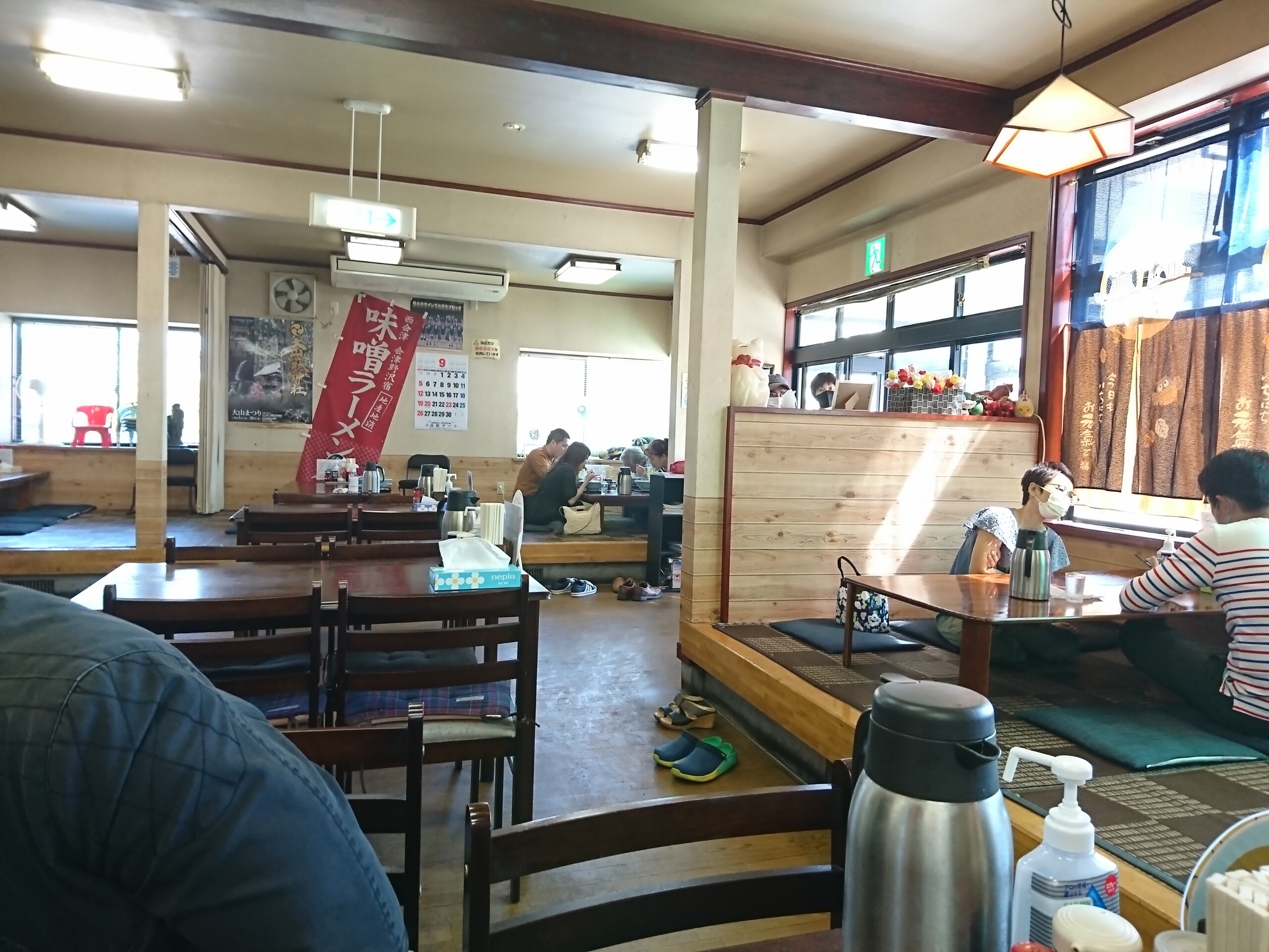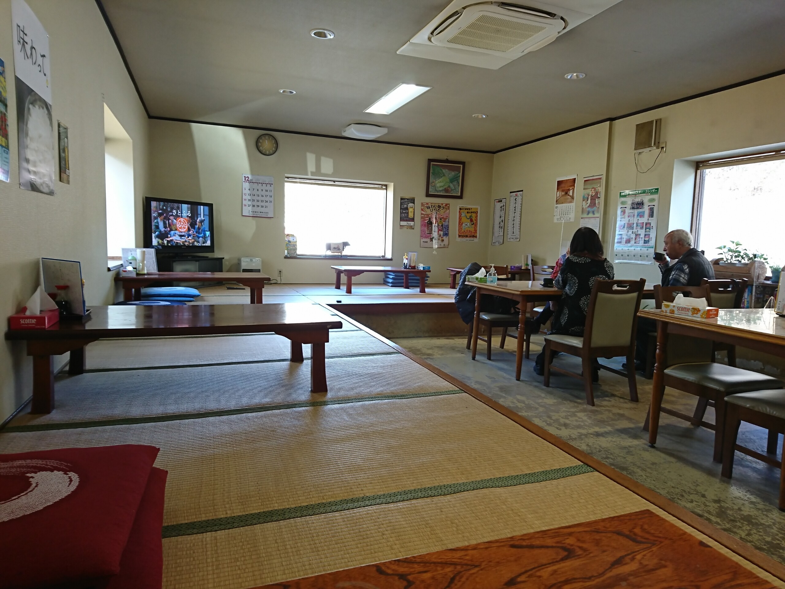 食事コーナーはこんな感じで4人掛けのテーブル席が6席に座敷にはテーブルが4つありました。