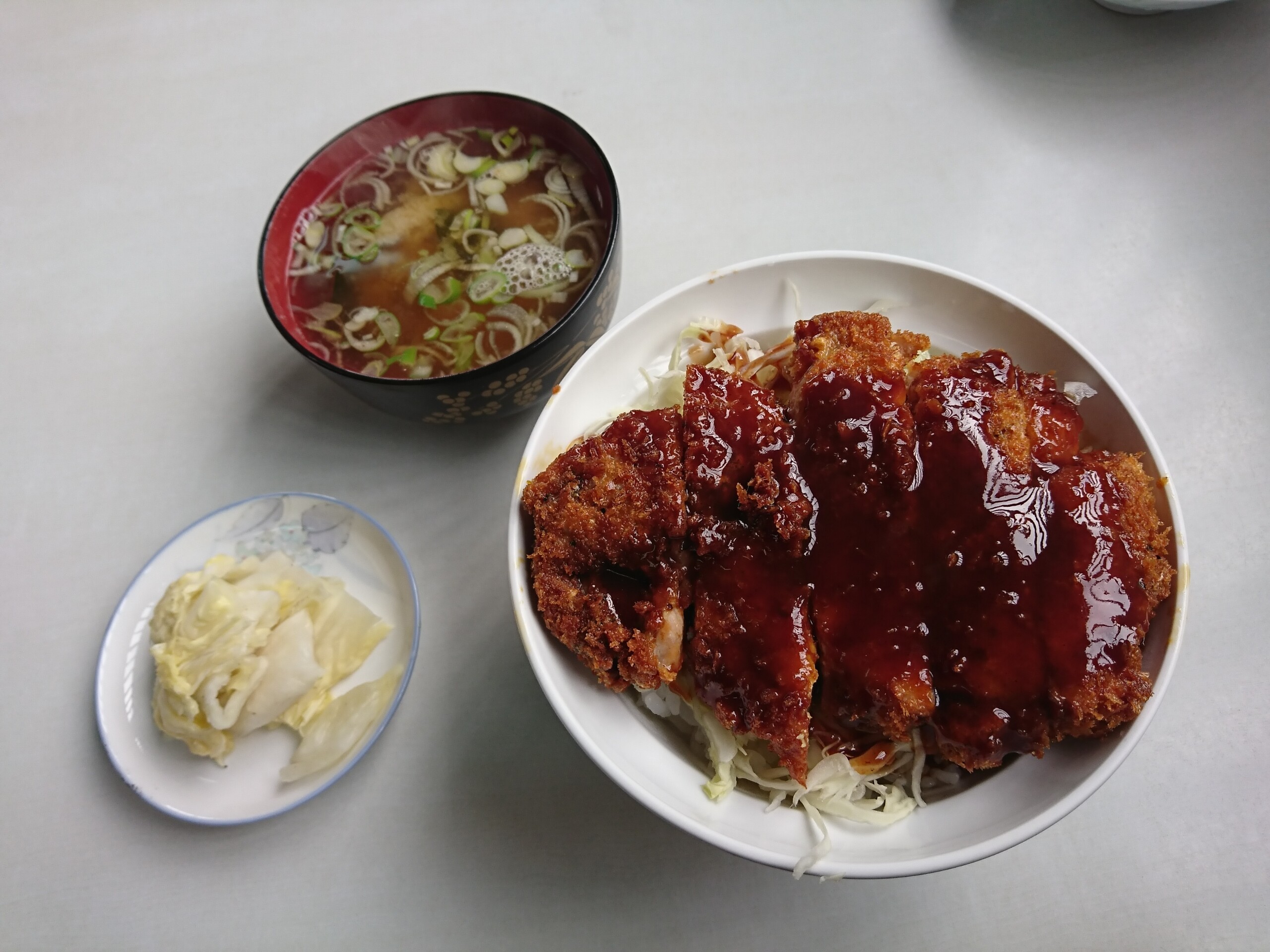 食べたの会津名物のソースカツ丼(1000円)です。ソースカツ丼にはたっぷり入った味噌汁と白菜の自家製っぽい漬物が付いていました。でもソースカツ丼は小さめの丼に入ってて思ったほど量が無くて少ないと思いましたが、カツは厚切りで厚みがあって柔らかくて美味しかったです。